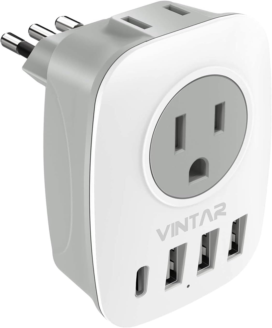 6 in 1 Italy Power Adapter: This Italy power adapter enables 6 devices to be charged simultaneously. It accepts the standard American Plugs (2500W/ 250V max, 10A); USB Ports (5V/2.4A), USB C charge up to 3A, ensuring the optimal current with stable performance. Perfect for Cell Phone, Laptops, Camera, Power Bank etc