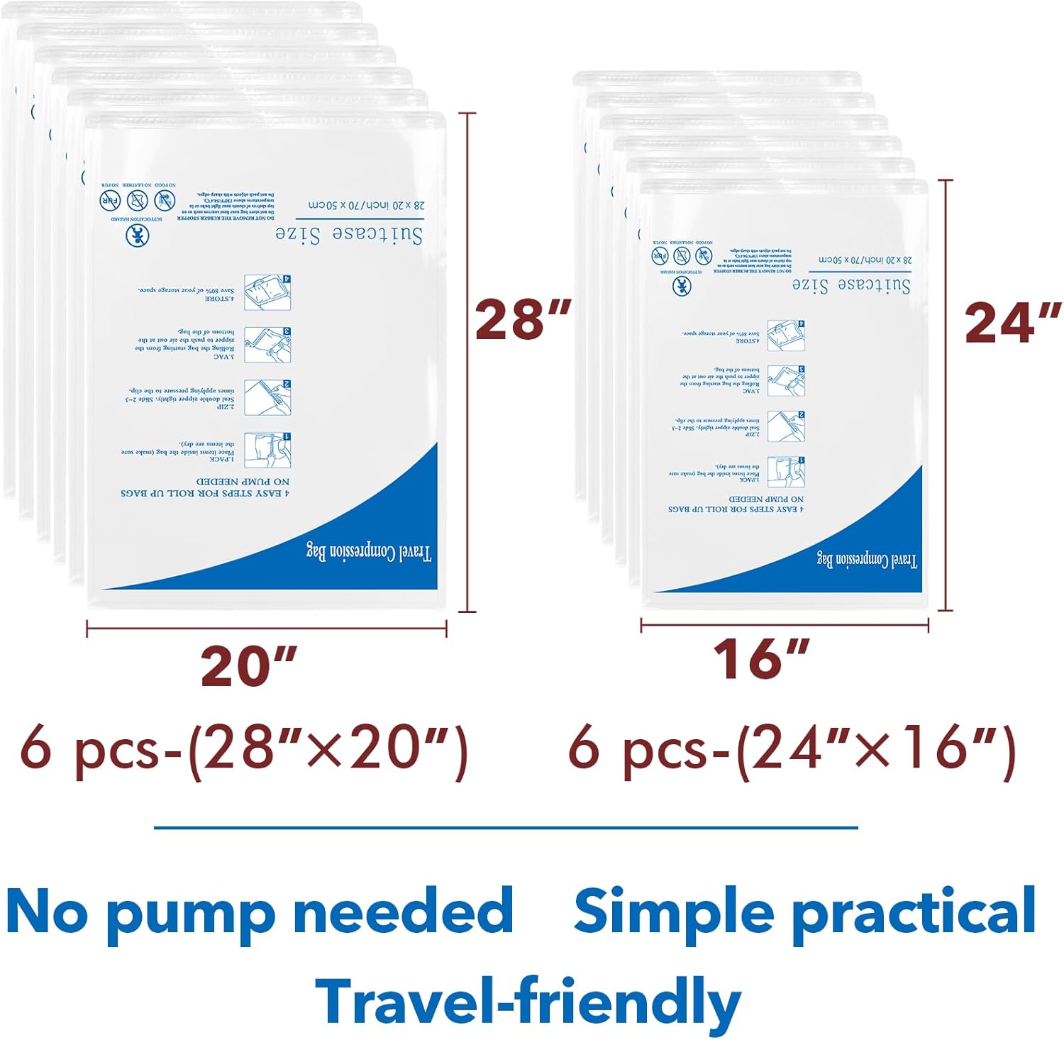 Ultimate Space Saver for Travel: These MEIQIHOME compression bags for travel allow you to maximize luggage space, making them perfect for packing clothes, bedding, and dirty laundry. Available in 6 medium (16×24 inches) and 6 large (28×20 inches) sizes, these vacuum seal bags are ideal for all your travel and home storage needs.