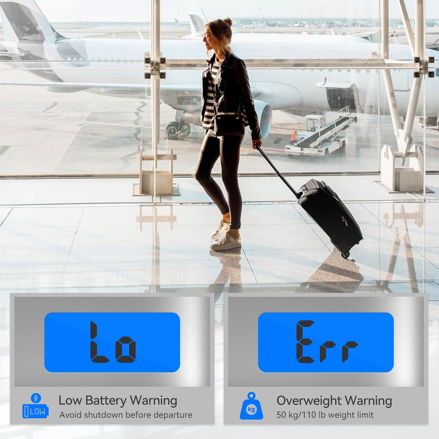 Overweight Reminder & Unit Conversion:With a max capacity of 110 lbs/50 kg and minimum capacity of 10 g, this travel scale alerts you with an “Err” icon when your luggage is too heavy. Effortlessly switch between kg, lb, °C, and °F with accuracy up to ±1%.