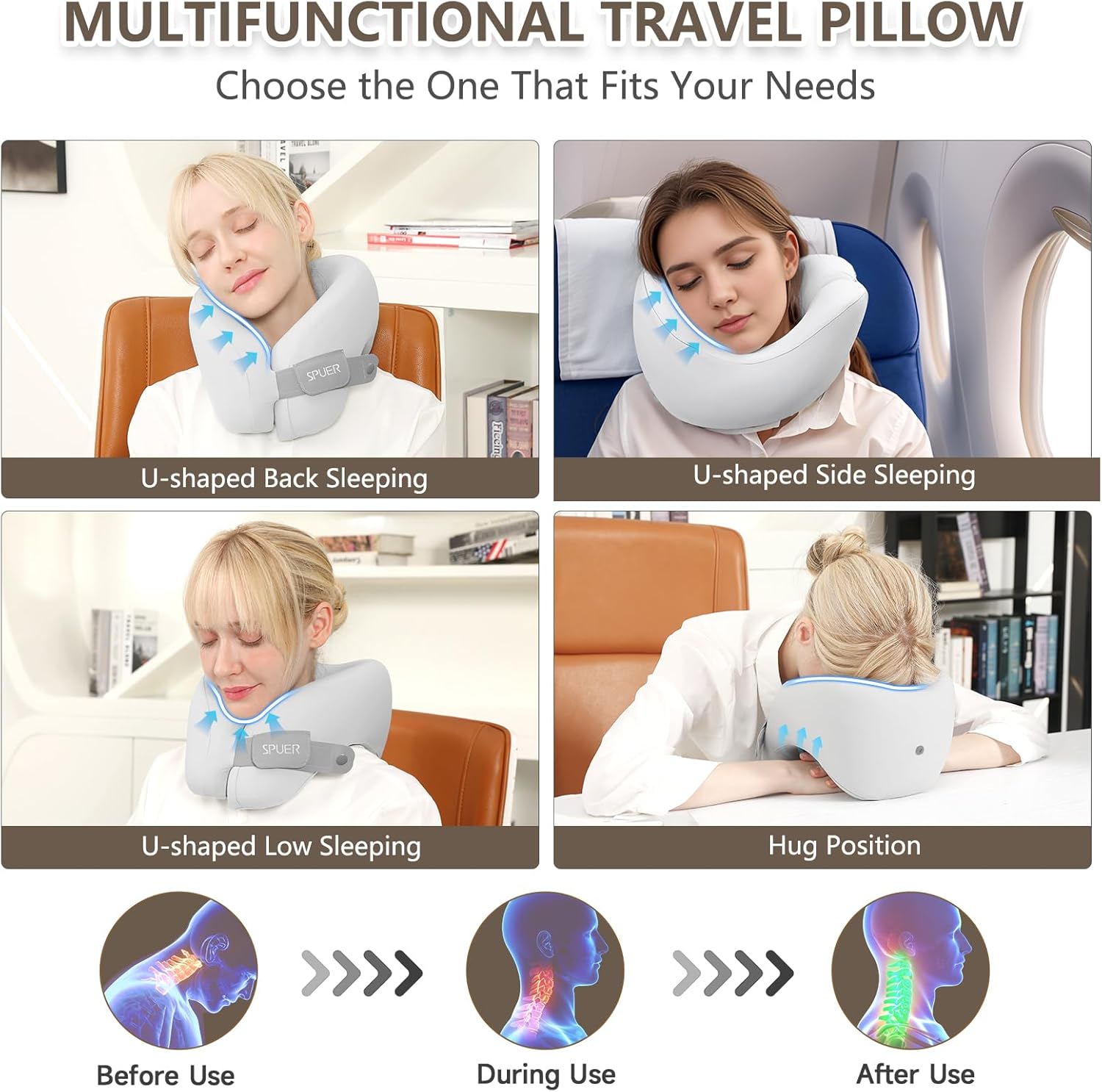 【Comfortable Ergonomic Support】Are you troubled by fatigue and neck pain caused by not getting enough rest during business trips and travels? Enjoy superior travel comfort with the SPUER travel neck pillow, designed to provide comprehensive support. With its thickened memory foam, it cradles your head, neck, chin, and back, Ideal for travelers who prioritize consistent comfort and pain-free journeys, no matter the duration