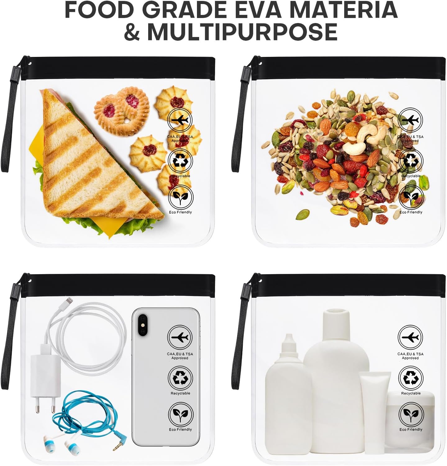š±ćLeakproof & Resealableć: No more flimsy metal zippers! Each reusable waterproof TSA-approved toiletry bag features triple-sealed seams and widened and thickened material for greater leak resistance and durability. No need to worry about travel size bottles, shampoo, creams and other liquids spilling into your travel duffel bag.