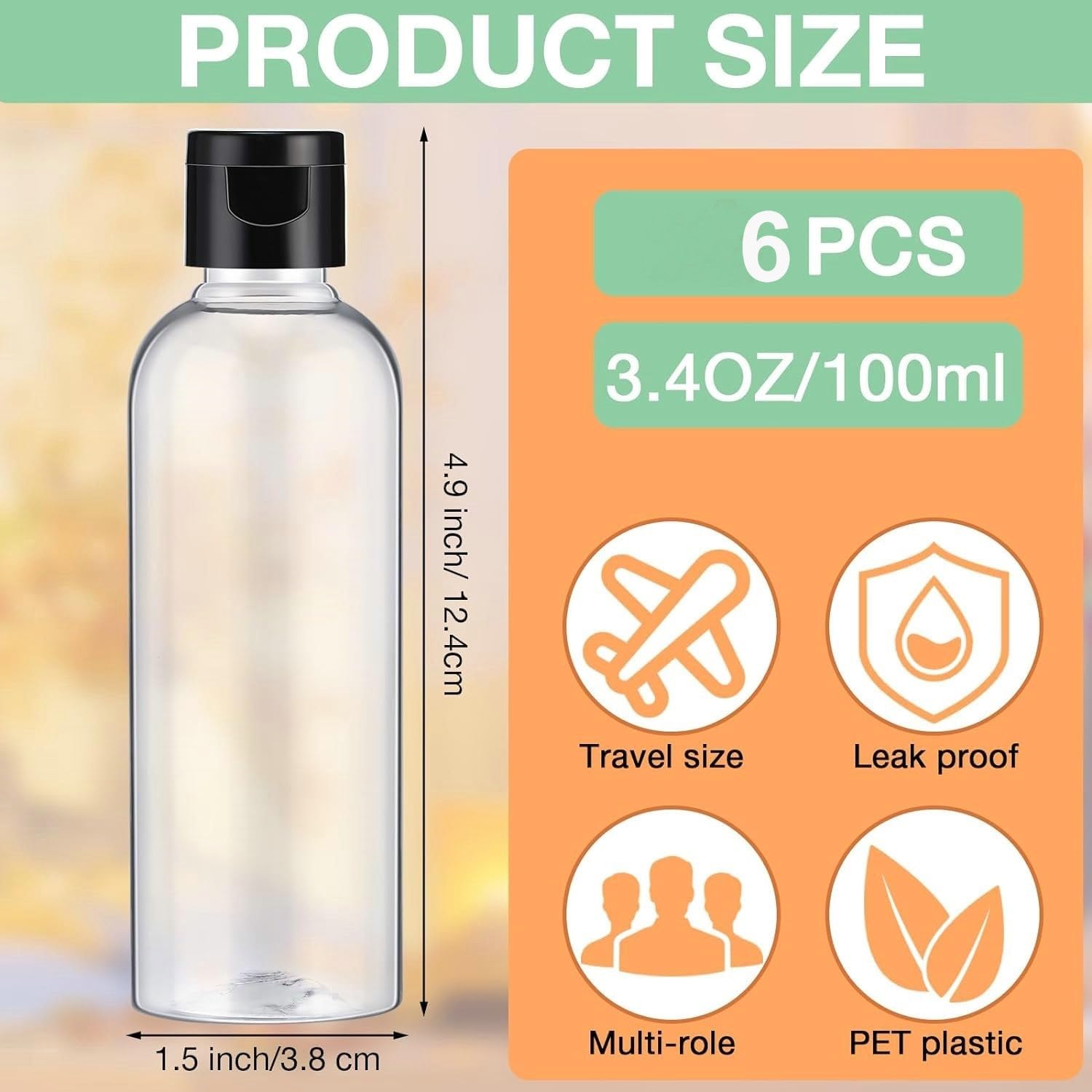 【Package include】You will receive 6 pieces 3.4oz/100ml clear travel bottles, enough quantity for your daily use or share it with your family and friends.