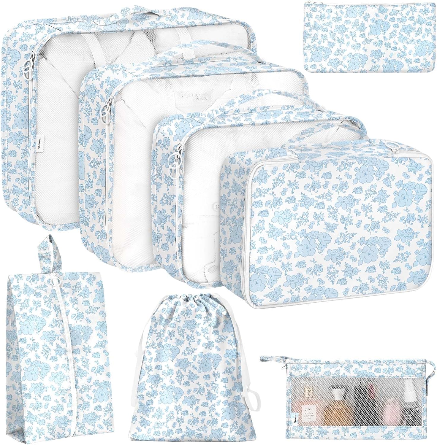 【Premium Quality】8 Set Packing Cubes were made from water-resistant ripstop nylon and ultra light weight oxford fabric, smooth corded double zippers, nice stitches. Portable, foldable, easy to storage, ensure that the packing cubes for suitcases can withstand high-density wear during travel
