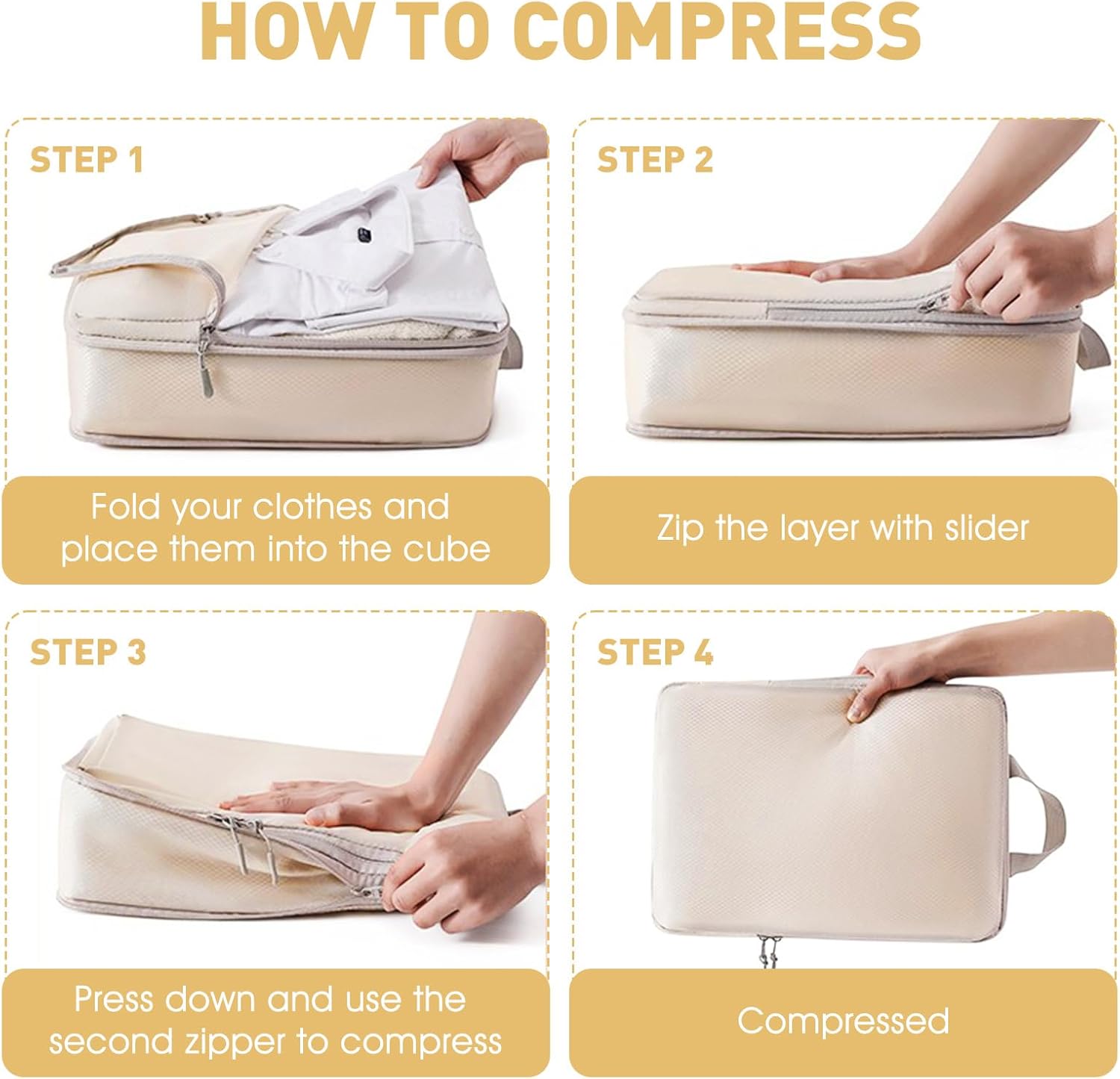 Space-Saving & Easy to Organize: Compressible and designed to compress bulk, compression packing cubes maximize storage space in suitcases by 80%. The smooth zips make packs easy to open/close, simplifying organizing during traveling