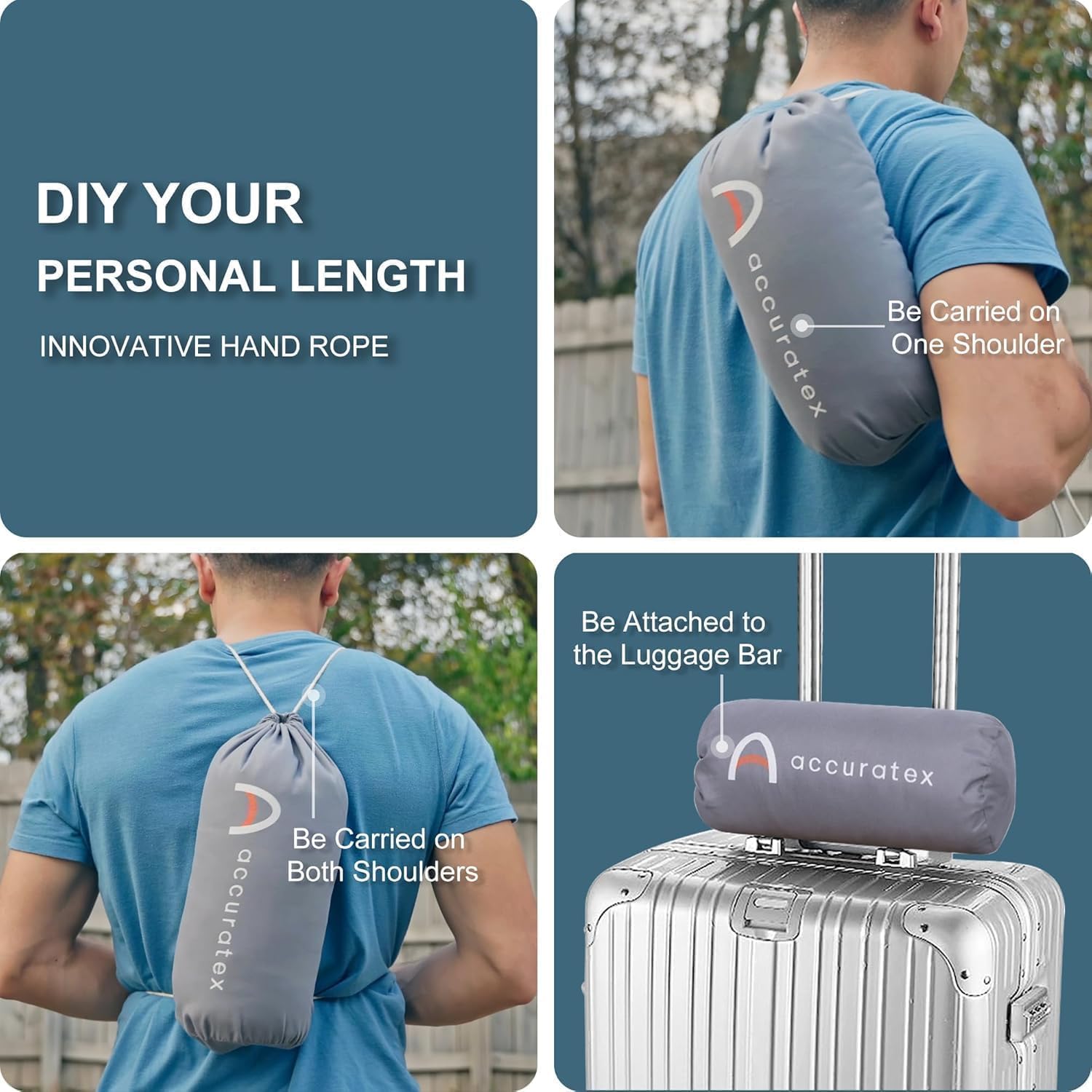 【HANDY ROPE】The small pillow has two pieces of string on either side of the storage bag which are long enough,they’re really convenient,you can carry it in your hand, carry it on one shoulder, also carry it on both shoulders, and when there’s not enough space in the suitcase, you can shorten the rope to secure the small camping pillow on the pull bar.Anyway, you can adjust the length of the rope any way you want.