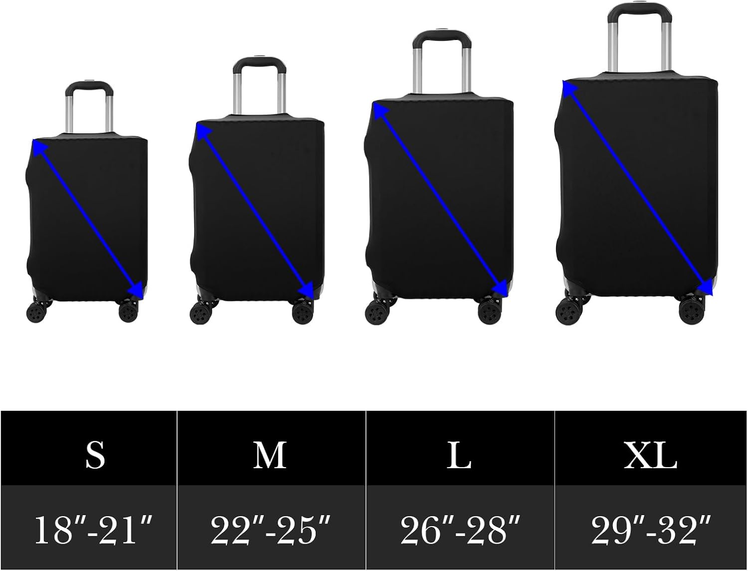 Travel luggage cover has 4 sizes available. S: fits 18-21 inch, M: fits 22-25 inch, L: fits 26-28 inch, XL: fits 29-32 inch. (Please measure the size of the suitcase before purchasing).