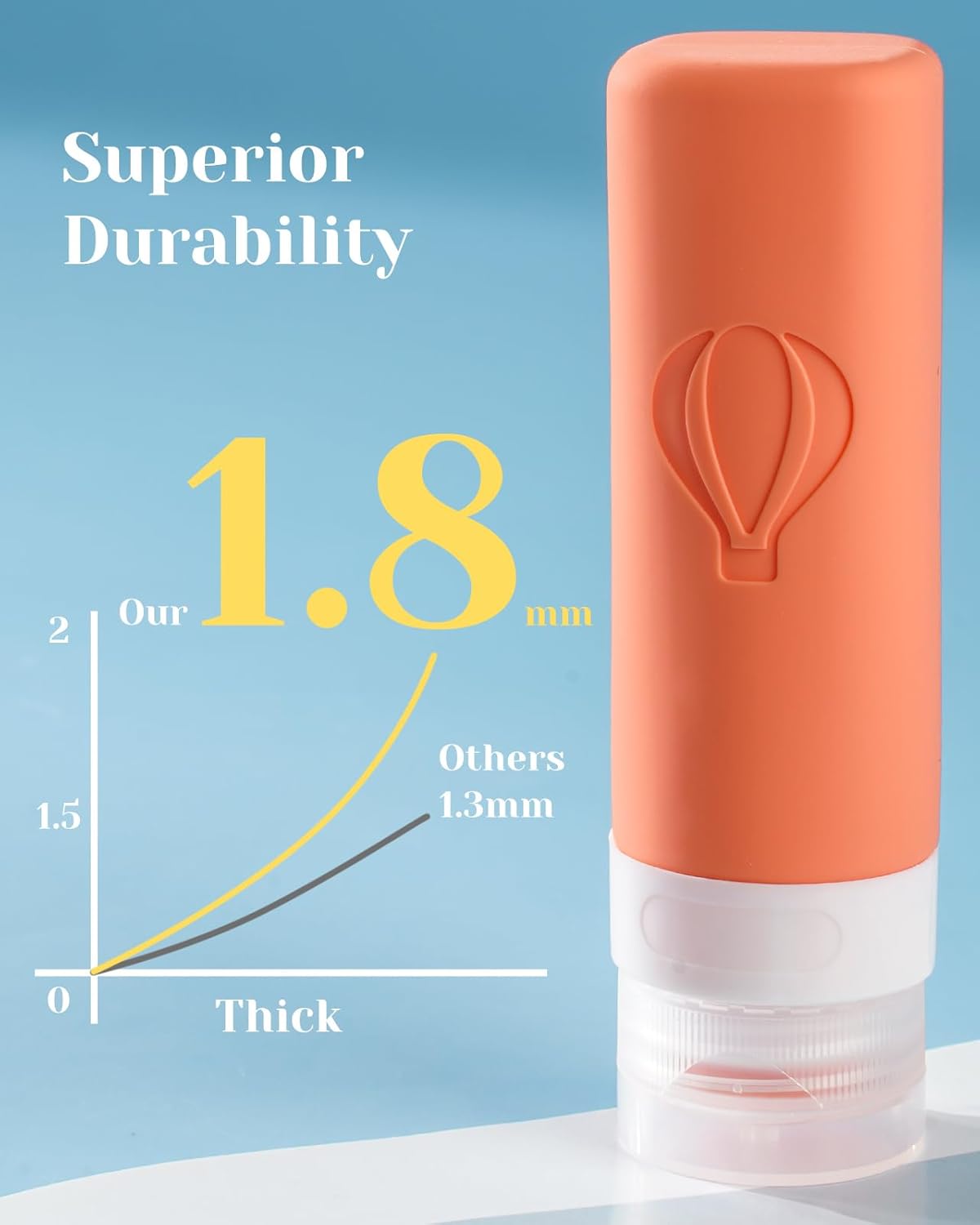 Our thicker silicone ensures strong rebound, great hand feel, and durability against air pressure changes and heavy luggage, making them perfect travel containers for toiletries.