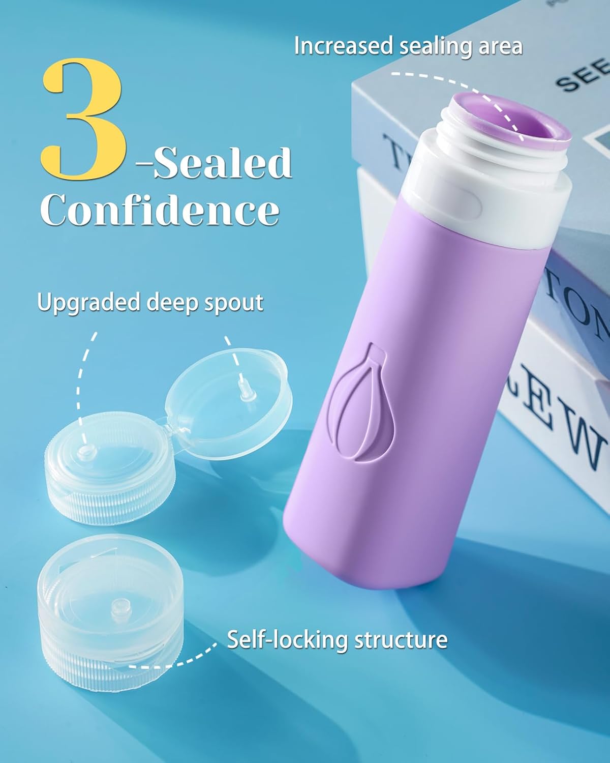 Ultimate Leak-Proof Protection: With an upgraded deep spout, increased sealing area, a self-locking structure, our silicone travel bottles for toiletries have a triple-layered leak-proof design. No worries about spills during flights or pressure.