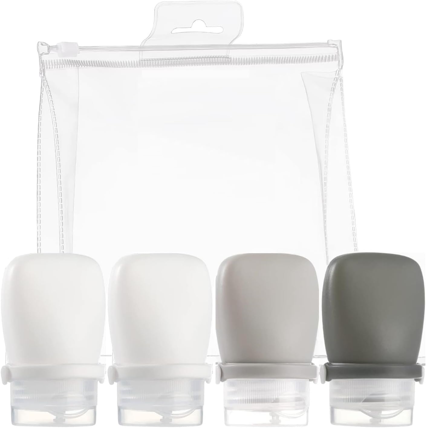 ◆ ESSENTIAL TRAVEL BOTTLE SET:-This is a practical travel container set inside a clear bag.You will get:4 Pcs Silicone Travel Bottles(1oz)+1 Pcs Clear Bag.You can store enough toiletries with our silicone travel bottles,nicely takes up less room in your luggage.Convenient and portable,must-have traveling sets.