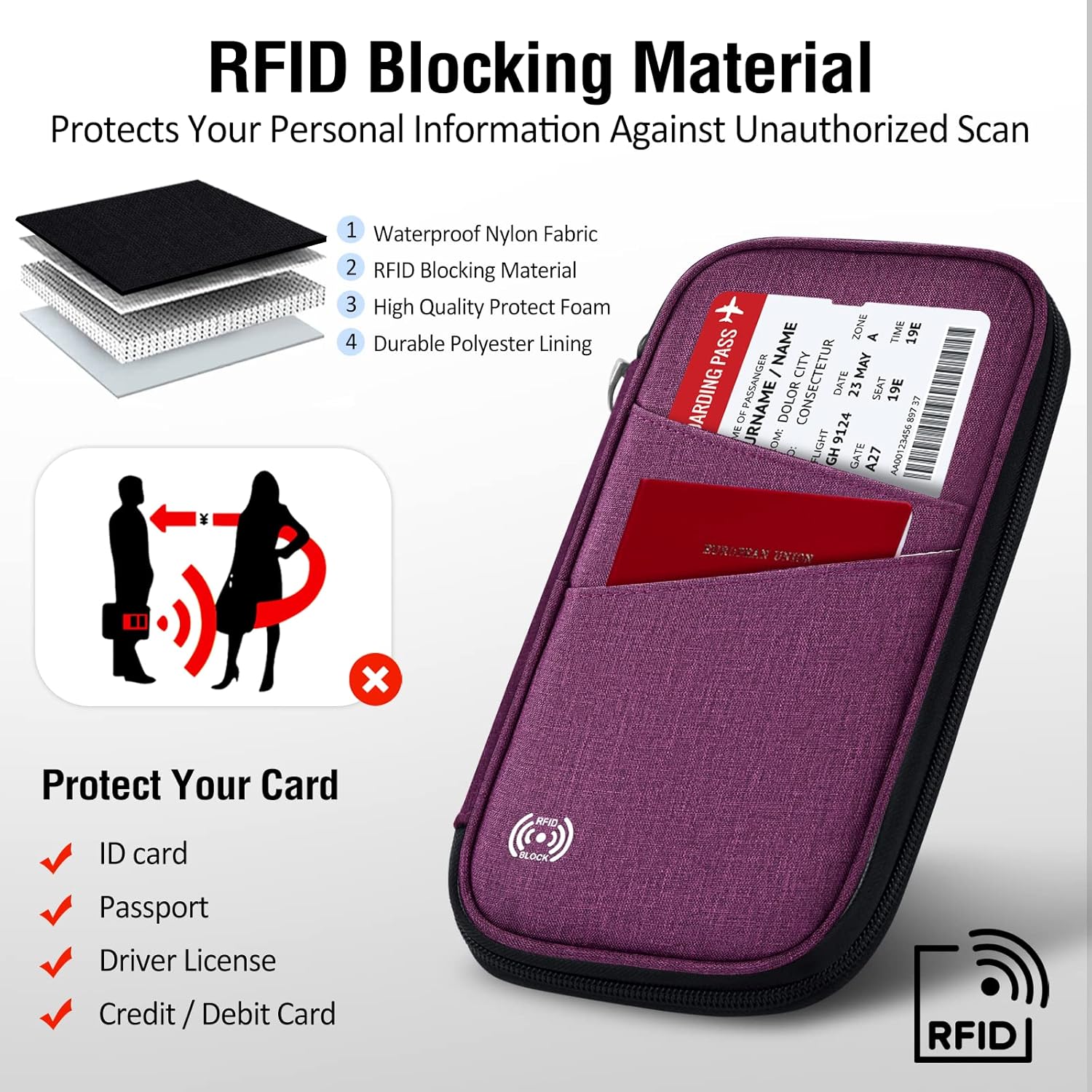 ✈️【RFID BLOCING PASSPORT HOLDER】BKNOOU family travel Document Holder has a built-in shield to prevent thieves from scanning your passport, ID card, credit card or personal information, etc. The rfid passport travel organizer will prevent any property damage or disclosure of personal information.