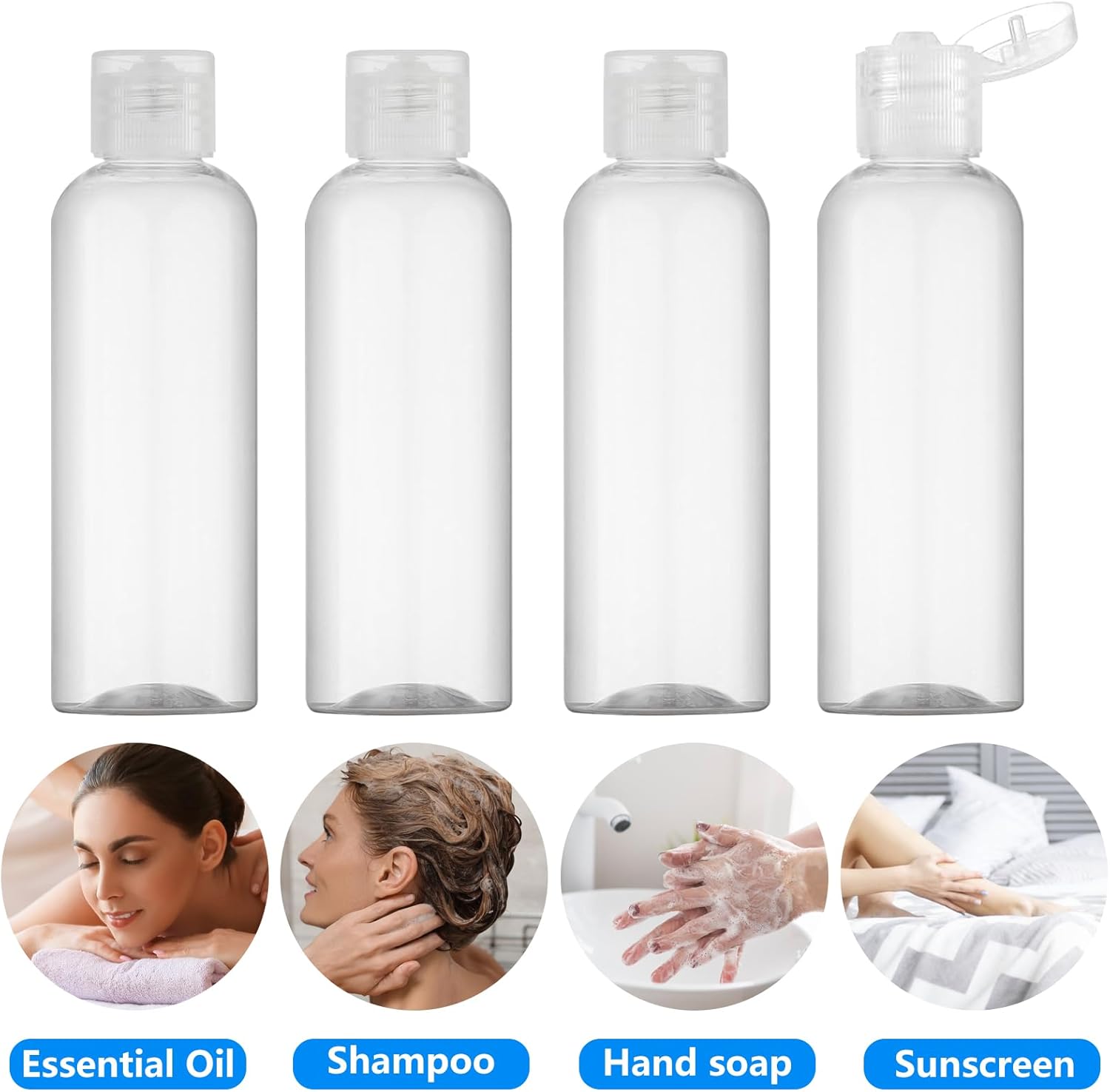 4 PC 100ml Empty Plastic Travel Bottles for Toiletries Leak Proof Squeezable Containers Travel Essentials Accessories, clear