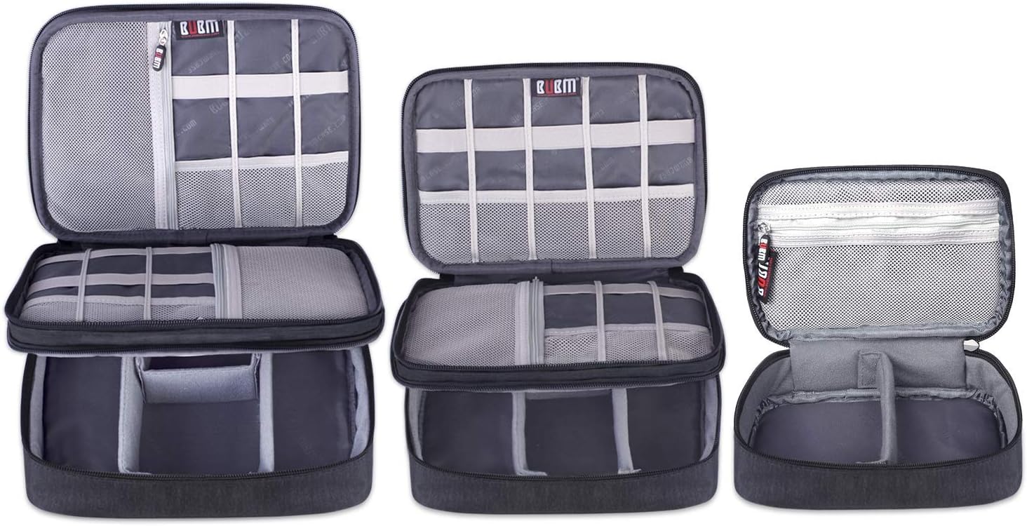 BUBM 3Pcs Electronic Travel Organizer, Gear Carry Bag for Cables, Cord, USB Flash Drive, Battery and More