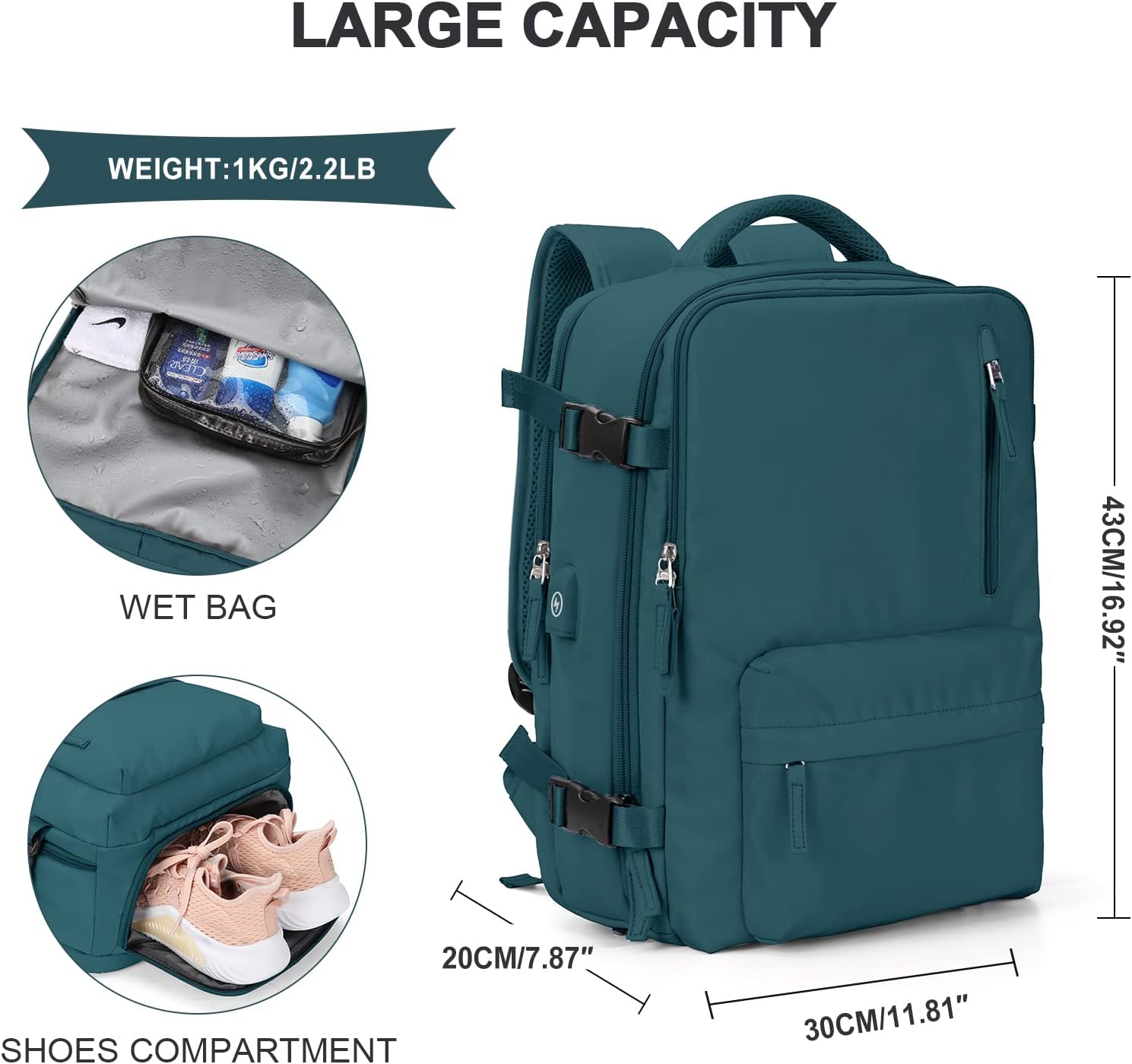 【Separate Shoe Compartment Design & Wet Bag】Main pocket x 2, laptop compartment x 2 (fit for a 13” tablet and 14” laptop respectively), and many other pockets for different purposes. The wet bag is made of high density water resistant material can help you to separate dry items and wet items,if you have wet clothes or towel,you can put it in wet bag. A separate shoe compartment can help you carry and keep your shoes better in your travel bag.