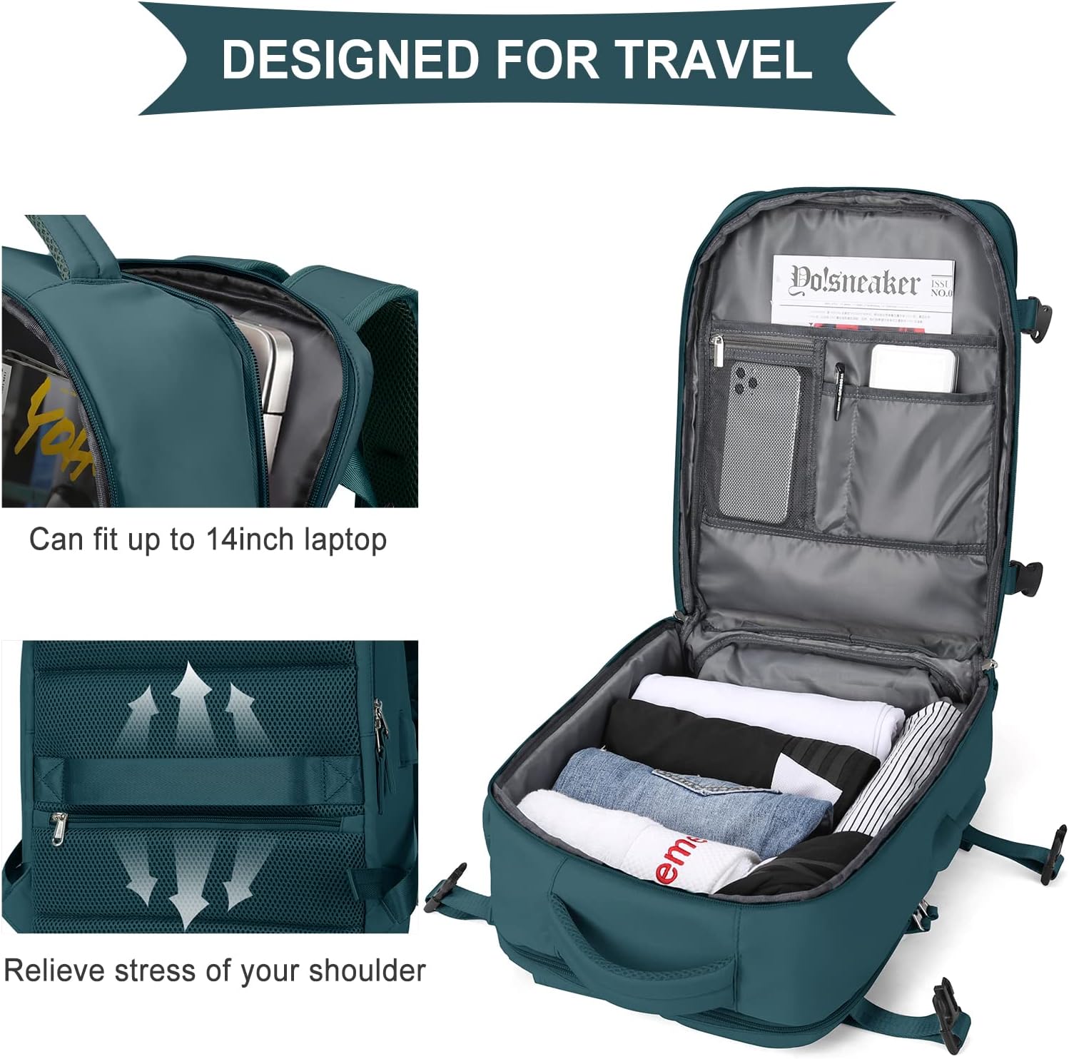 Cabin Bags for Travel, Underseat Carry on Hand Luggage Backpack for Women Airplane Approved Travel Backpack Personal Item Travel Bag 14 inch Laptop Backpack for Business Casual Work Peacock Blue