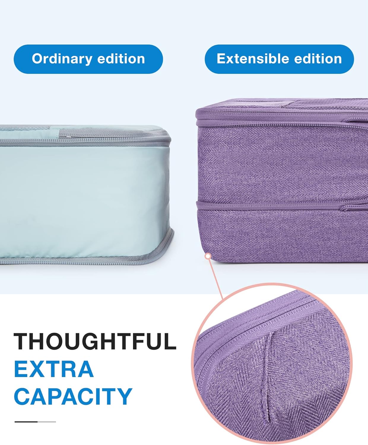 TRUE COMPRESSION: Double zipper + compression zipper each in its own way. Double zipper ensures storage and compression zipper saves space. The small size storage bag only uses a single zipper due to small capacity. Just try it! Only smiles accompanied hope. Leave the luggage sorting to BAGSMART suitcase organizer.
