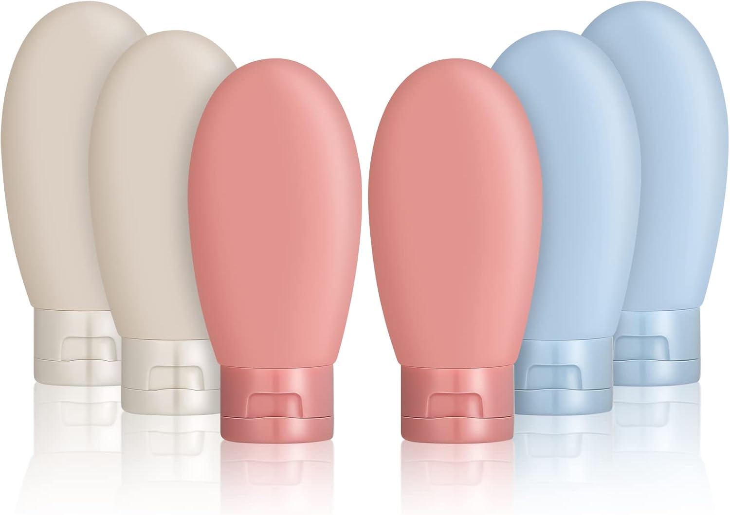 Package Includes: The package includes 3 different color bottles,two colors each, a total of six. One travel bottle size is 10.5 × 5.1 ×3.3 cm, with 60 ml capacity