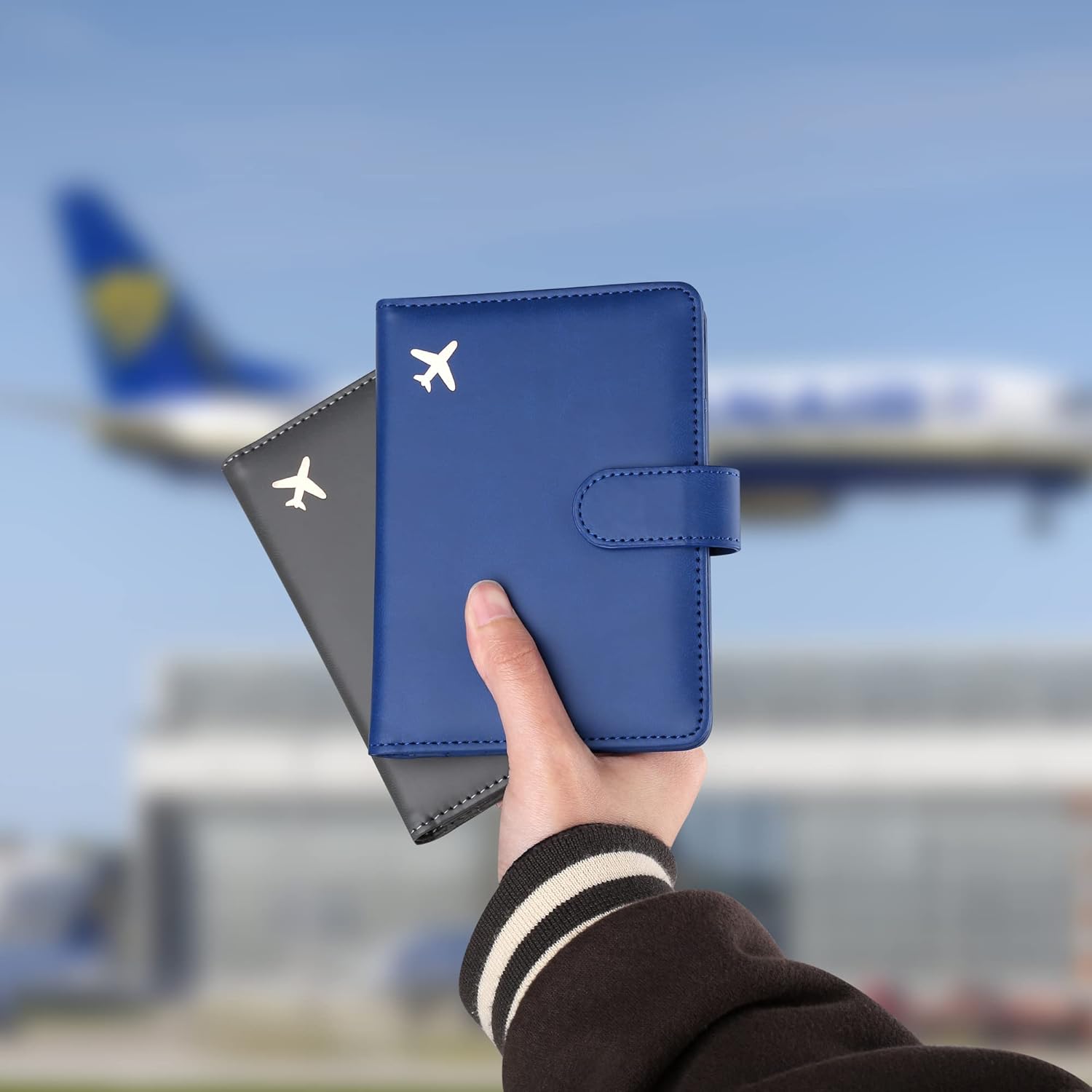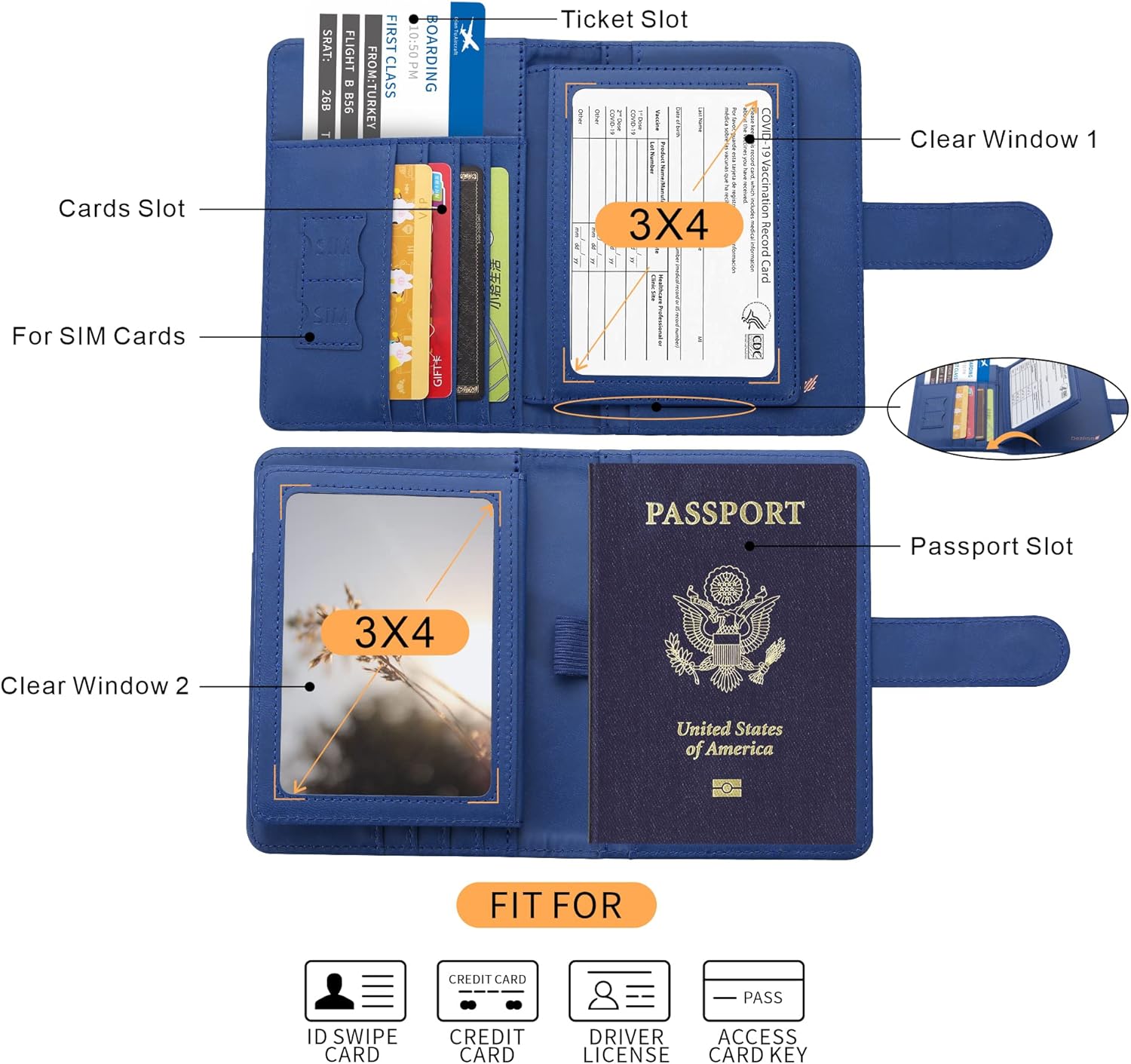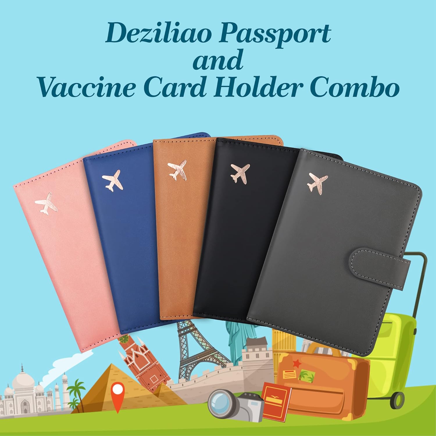 Deziliao 1 Pack Passport and Vaccine Card Holder Combo, PU Leather Passport Holder with Vaccine Card Slot, Passport Wallet for Men and Women (Blue-fly)