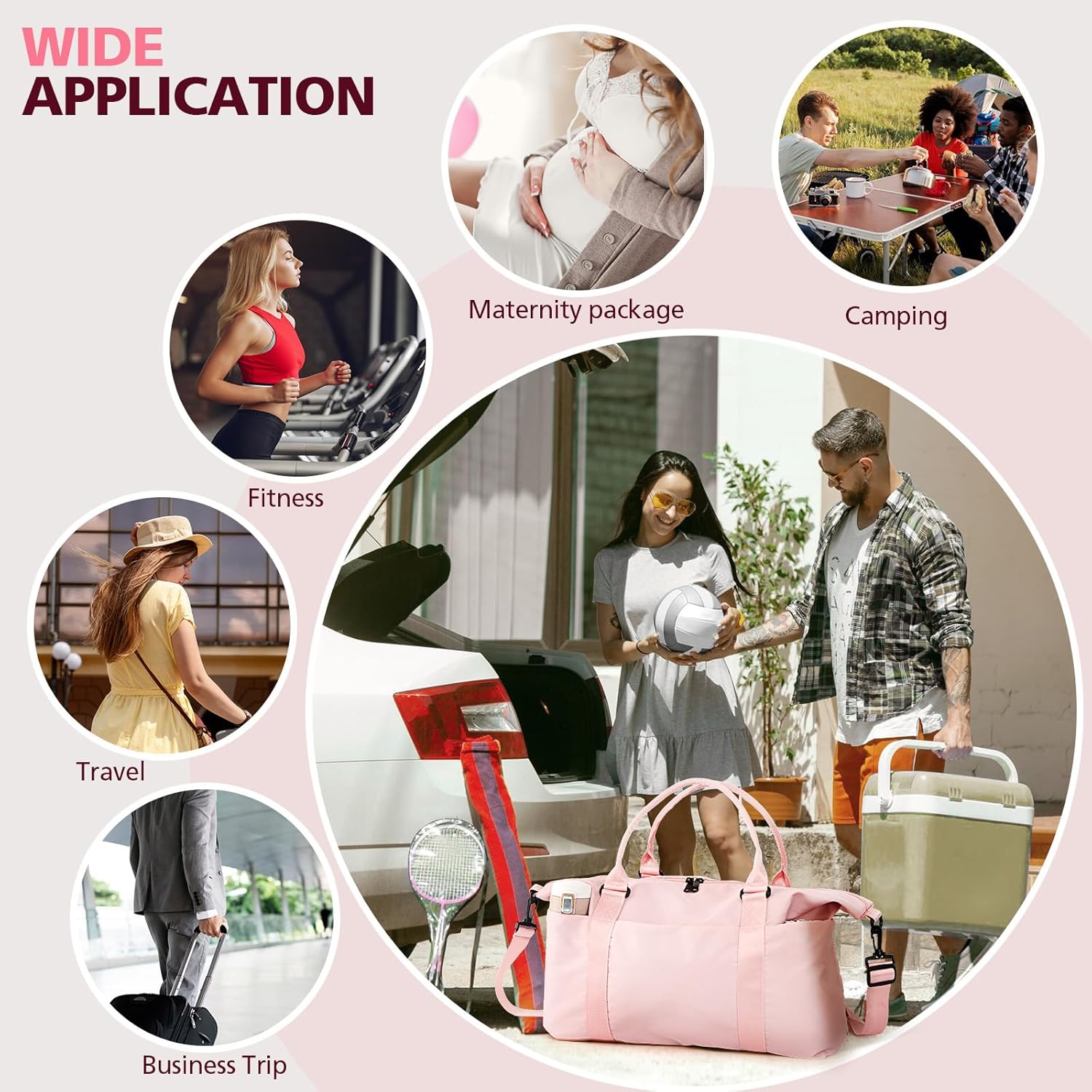 【Travel Accessories Weekender Bag】This duffle bag for women is designed to be both fashionable and practical. It can be used as a men’s gym sports bag, school luggage bag, travel carry on bag, travel handbag, or gym tote bag, suitable for exercise, travel, sports activities, tennis, basketball, yoga, fishing, hunting, camping, hiking, and many outdoor activities. Choosing our lightweight and portable shoulder bag will kickstart your healthy lifestyle and exciting journeys!