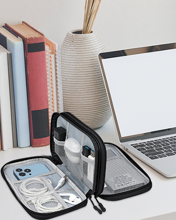 【Well Organized】This electronics organizer adopt a layered design and a visual grid design, the layered design can prevent friction and scratches; the visual grid design of this tech pouch can help you quickly find the electronic accessories you need.All pockets of the electronics organizer are equipped with elastic loops to keep your everyday gadgets in place and provide quick access when you need them.This tech pouch is a business trip and travel essential for easy storage.