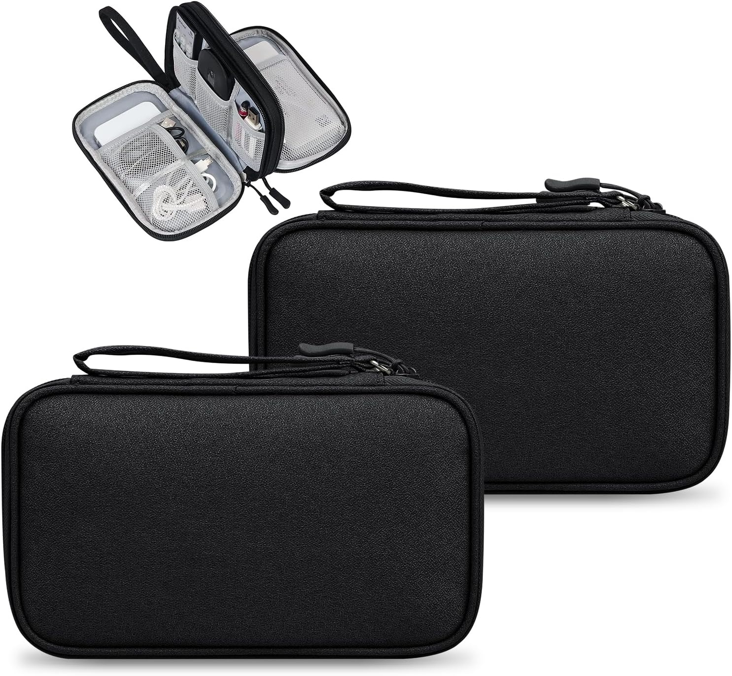 【Lightweight & Portable Travel Essentials】The external dimensions of this 2 pack tech pouch are: 8.27″(L)*4.92″(W)*2.36″(H).The light and compact size and the comfortable handle design make this cable organizer bag more portable, you can take it with you when you go out, or put it in your backpack, handbag, laptop bag, luggage, without taking up too much space, this 2 pack electronics organizer are ideal for work, business trips, travel, Perfect choice for office, school.
