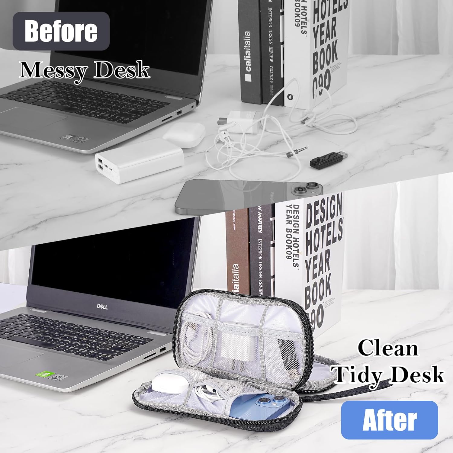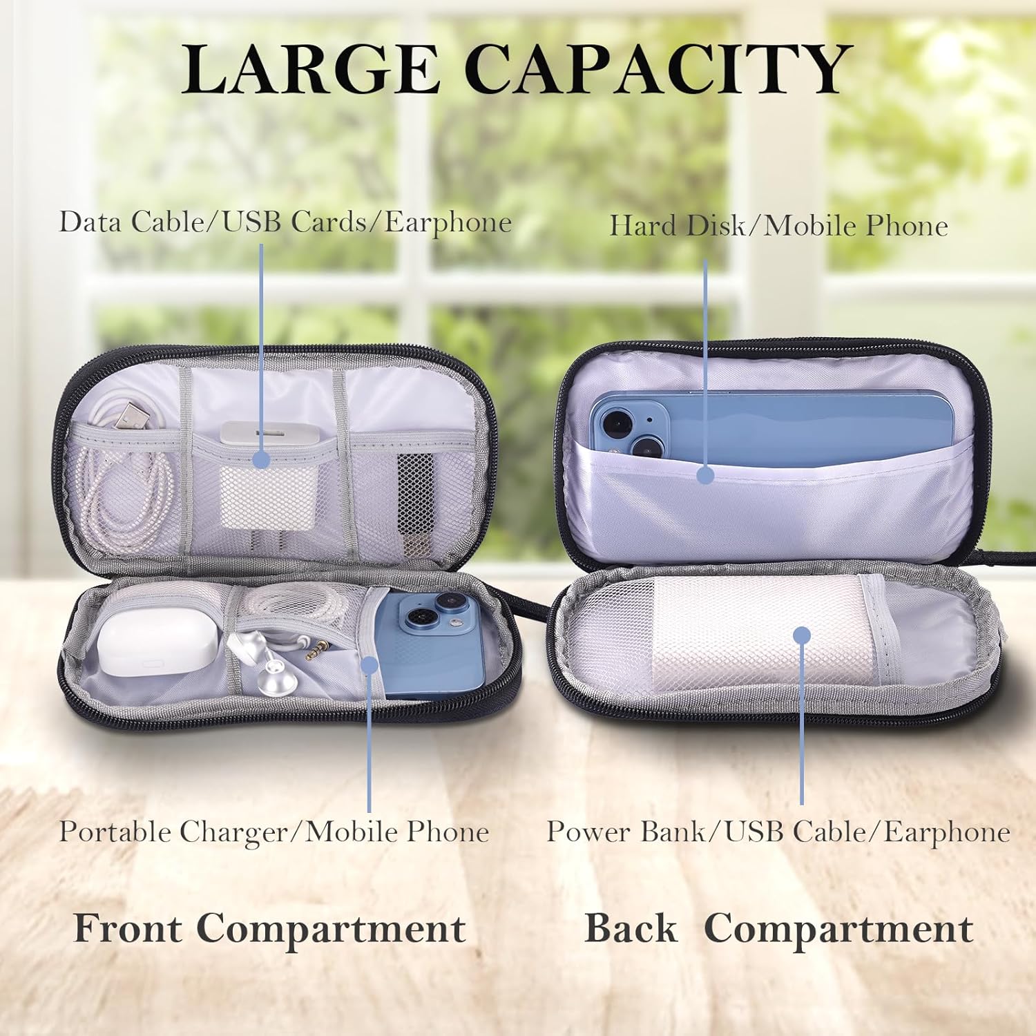 Double layer Design: The charger organizer features two internal compartments, providing ample space to organize wires, cables, USB drives, mobile phones, chargers, mice, flash drives, and other accessories.