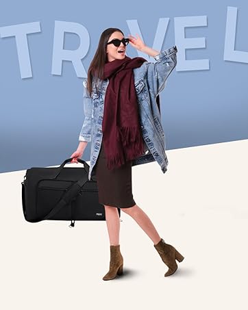 Foldable & Lightweight Duffle Bag: Expands to 24.5 x 11.5 x 14 in / 62 x 29 x 35.5 cm with 65L capacity and weighs only 0.94 lbs. Folds to 10.24 x 9.06 in / 26 x 23 cm—just 1/20 the size of a regular suitcase for easy storage and travel