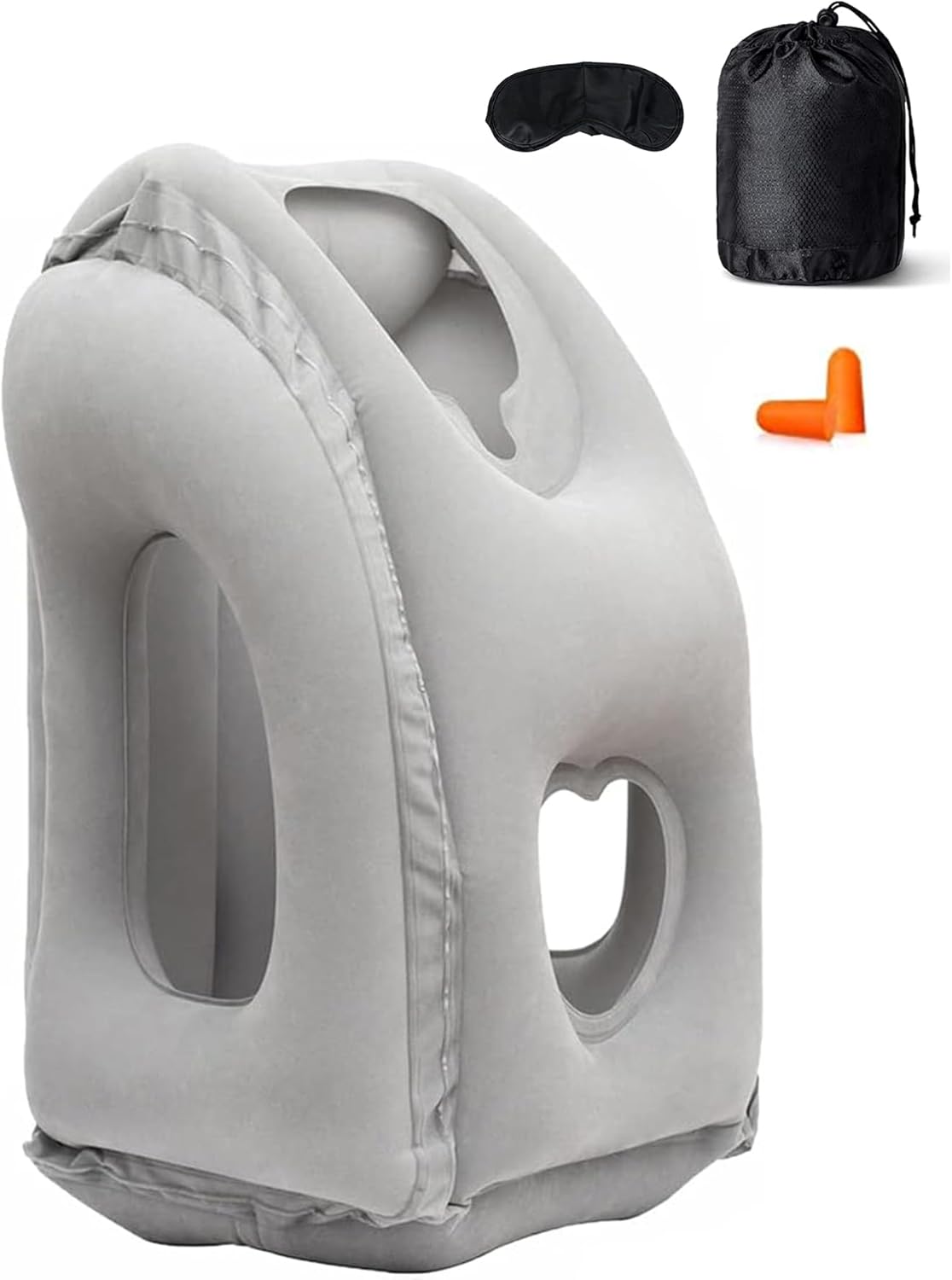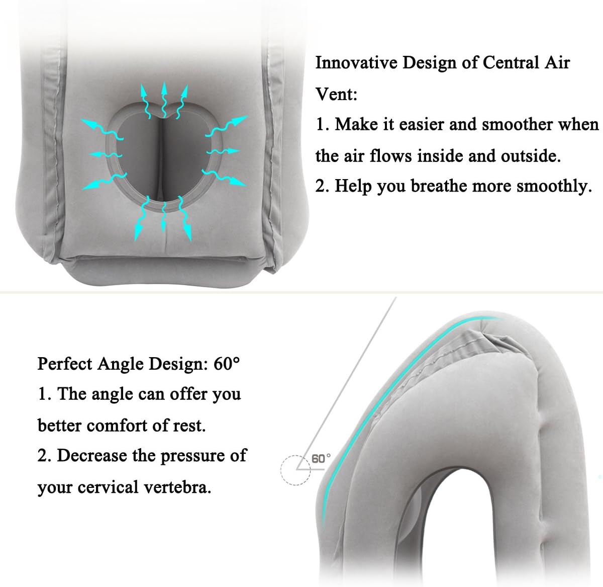 Ergonomic Design– Inflatable travel pillow is ergonomically designed, which promotes proper head and neck alignment.The travel pillow that provides full support for the upper body to make relaxing, and also helps you to relieve fatigue.And you also can put your phone into the hole, resting upon it while reading or watching a movie.