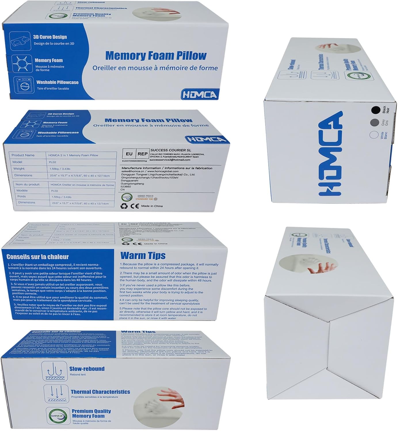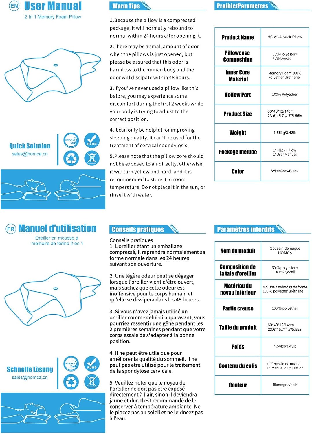 2 in 1 Neck Pillow: HOMCA memory foam pillow combines a neck roll pillow and a ordinary pillow, you can sleep on both sides. The neck pillow features an ergonomic design to help support your head, neck, shoulder and back, allowing you to drift off into uninterrupted slumber and wake up feeling fresh