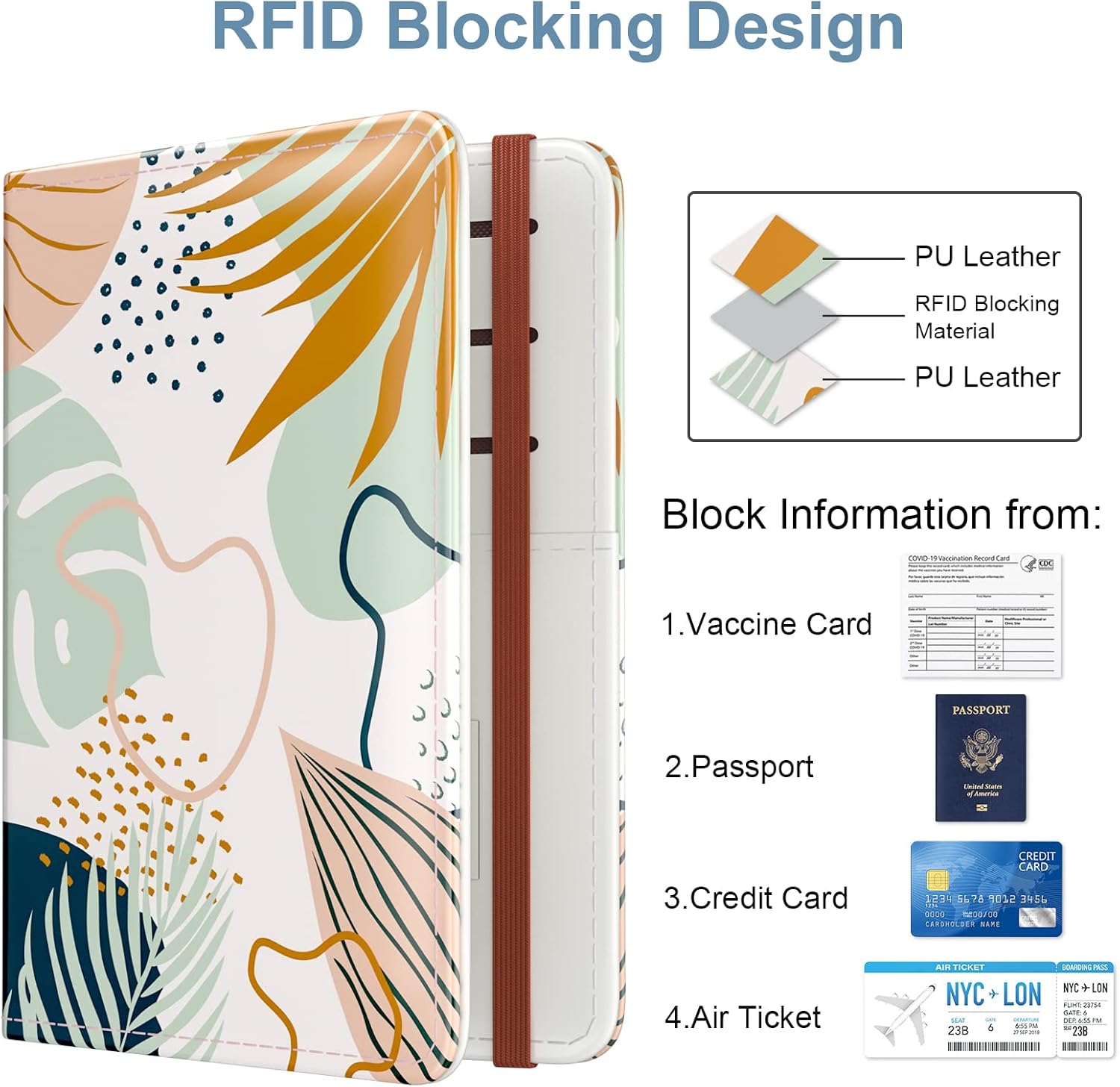 Hsxnam Passport & Vaccine Card Holder Combo, Passport Holder with Vaccine Card Slot, Passport Cover Case with RFID Blocking, Leather Travel Documents Organizer Protector for Women, Boho Plants, Green