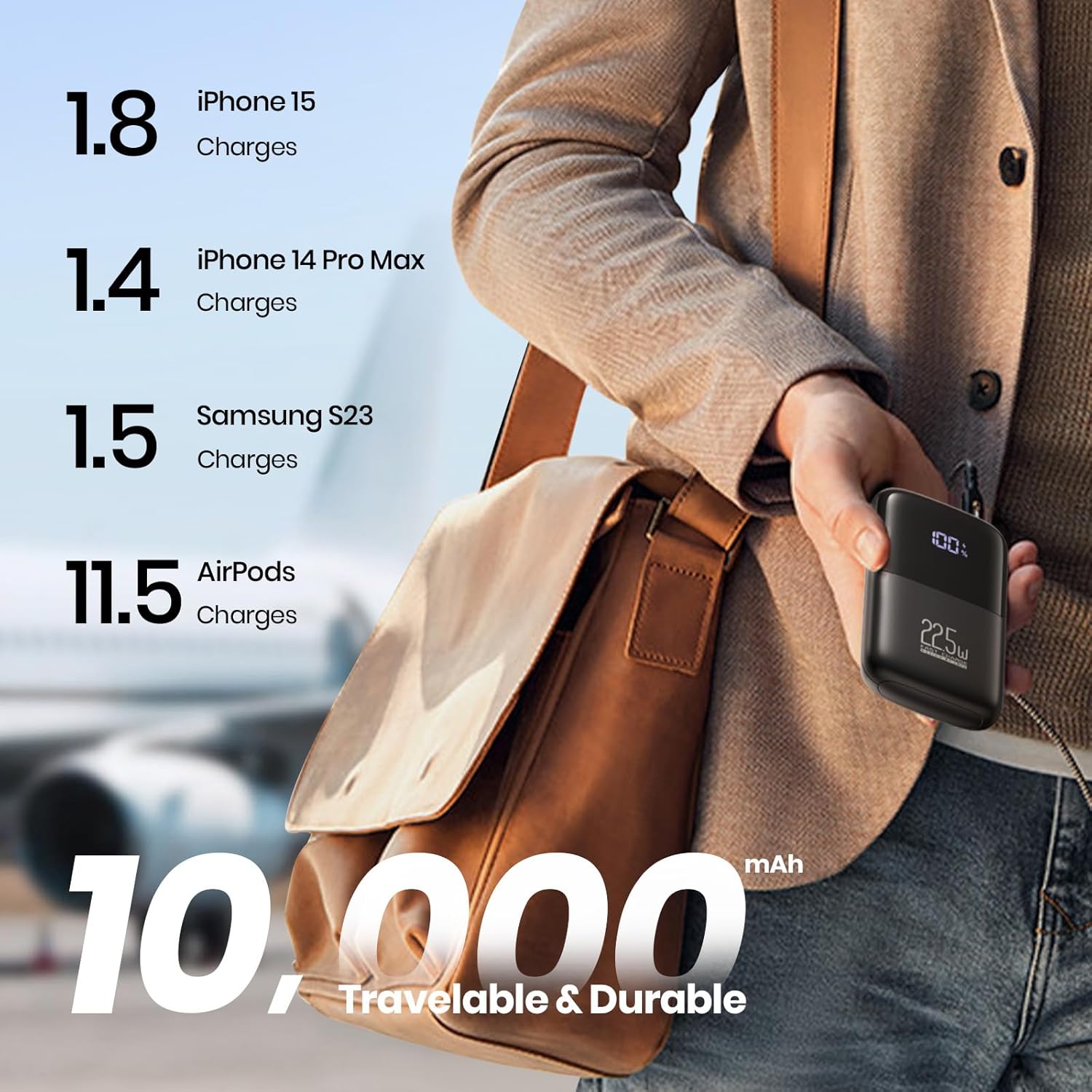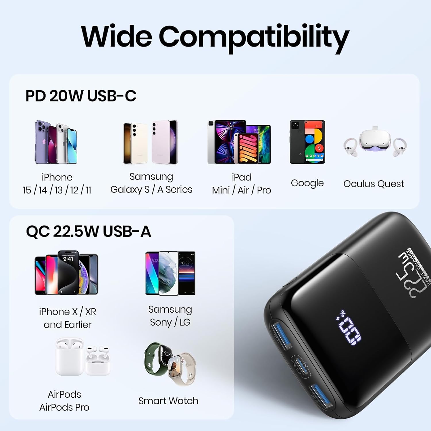 [Power for Days] The capacity of 10000mAh is stored in the mini body, providing juice to charge iPhone 8 3.3 times, Samsung S10 1.7 times, iPad Mini 1.6 times, and AirPods pro 11.5 times, etc.