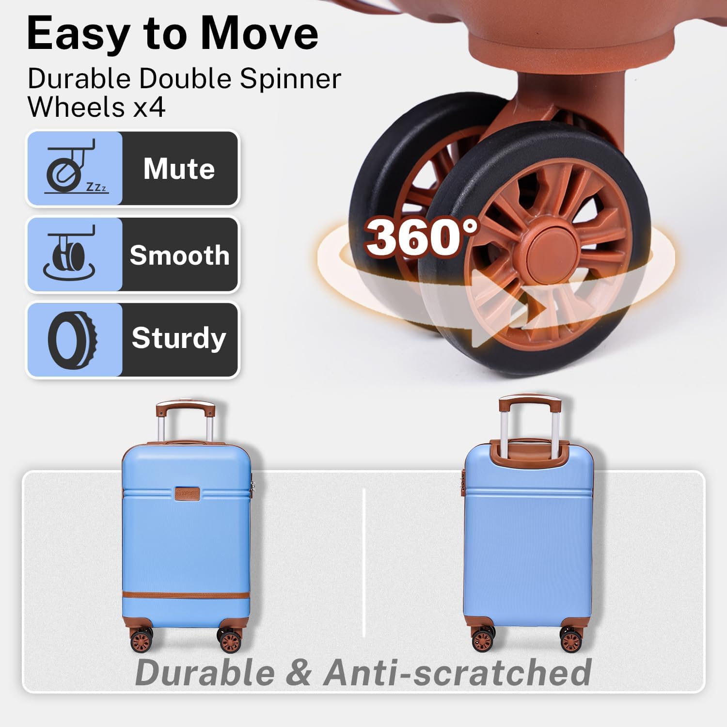 [360° Double Spinner Wheels] The Krute luggage is equipped with four 360° double spinner wheels, which can be rotated in different directions in all kinds of road conditions for smooth and silent movement, and is topped with an easy-grip handle and a telescopic (three-section) metal rod, which ensures that the suitcase can be moved easily and comfortably.