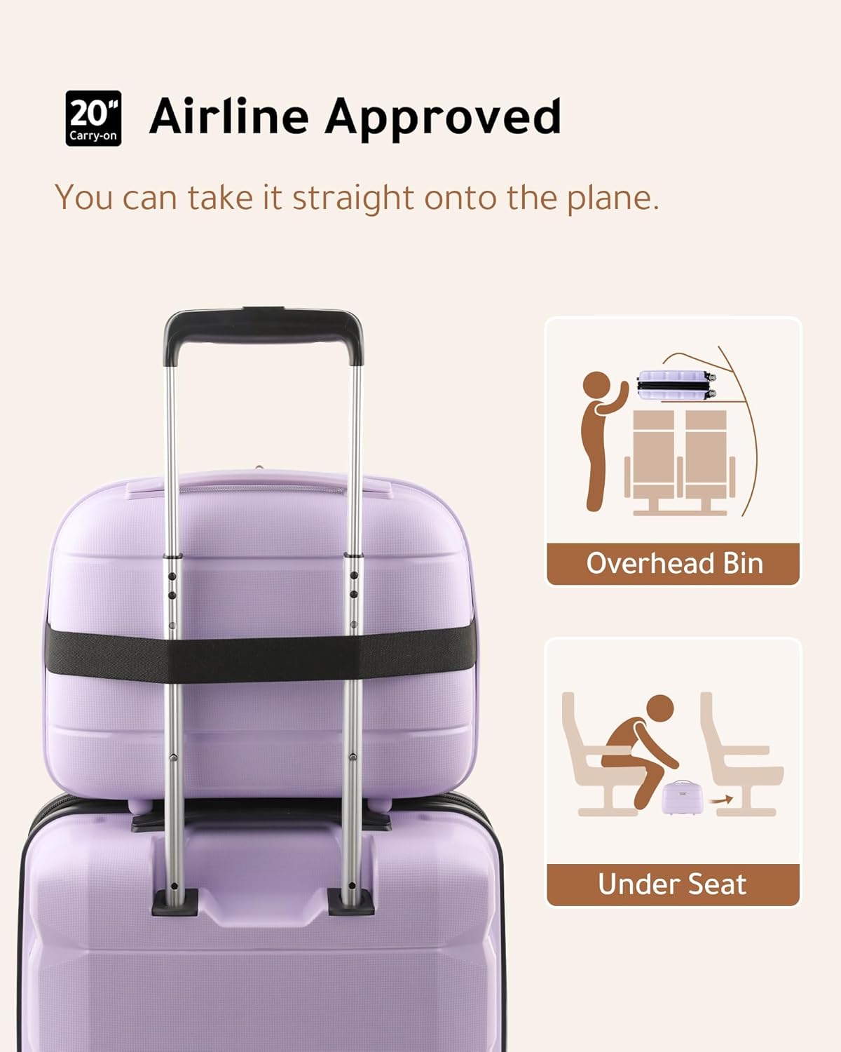 Convenient Accessory Bag: This luggage set of 2 includes a 14-inch cosmetic bag for easy access to your cosmetics and personal items. It provides extra storage space for travel essentials and makes your travel experience more organized and stress-free.