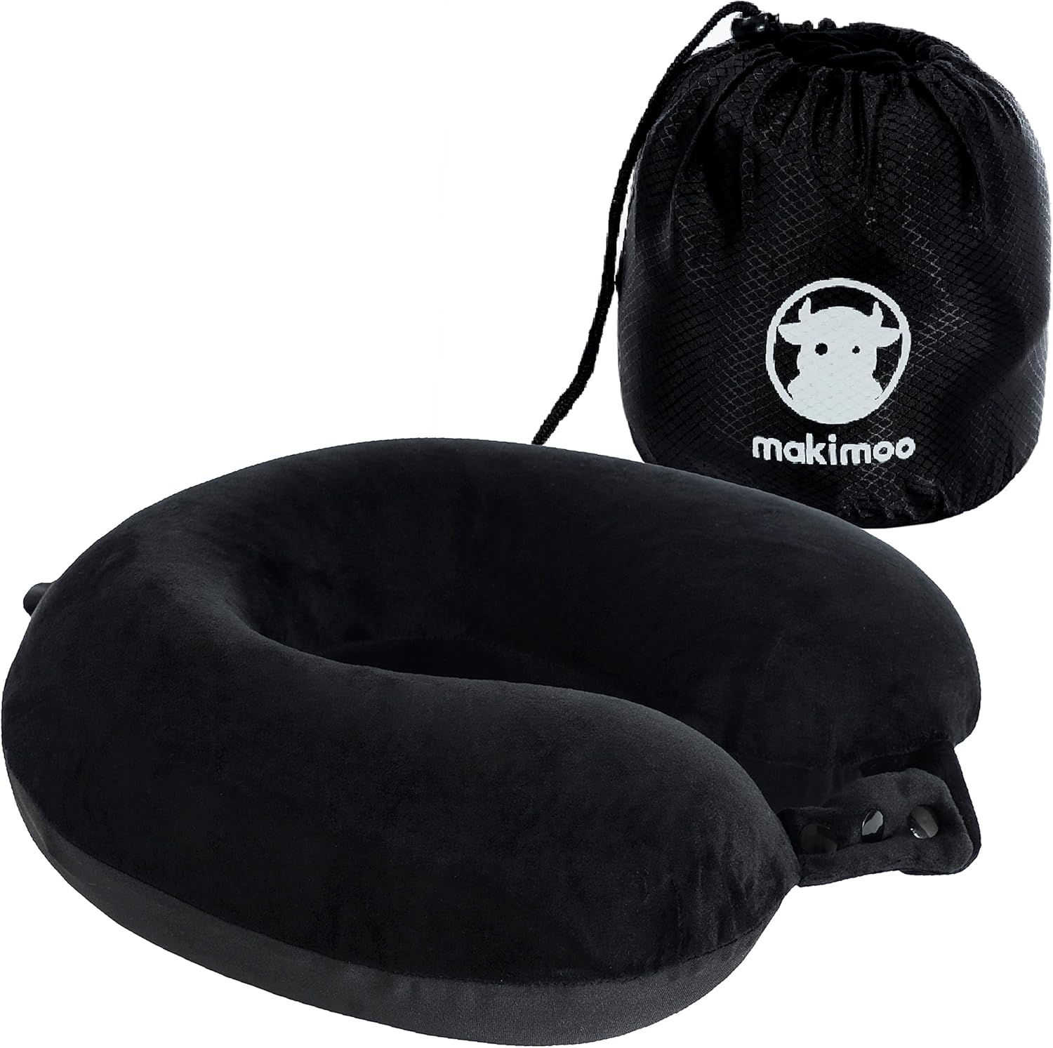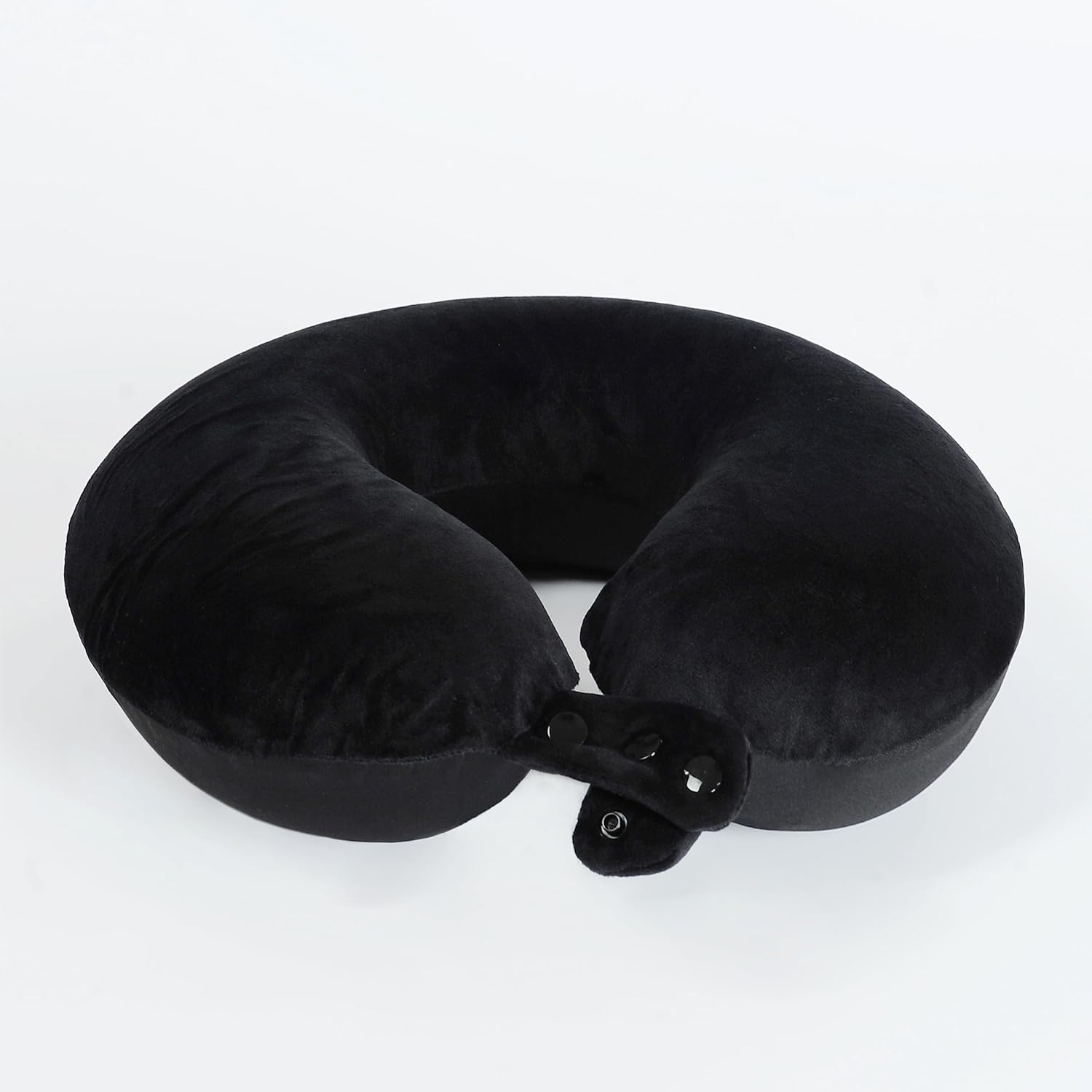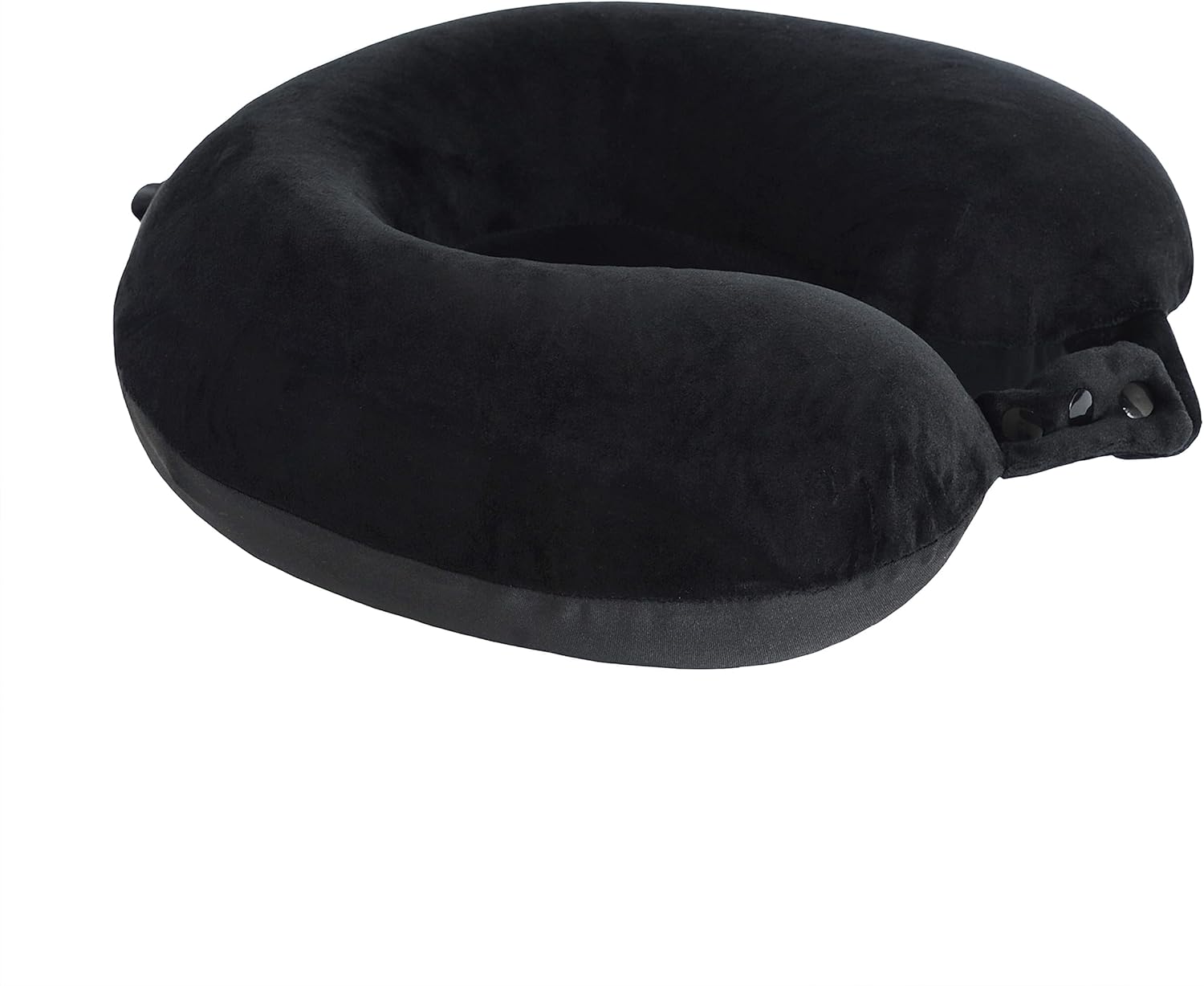 Travel Neck Pillow, Top Memory Foam Pillow for Head Support, Ideal for Airplanes, Cars, and Home Recliners, Adjustable and Soft (Black)