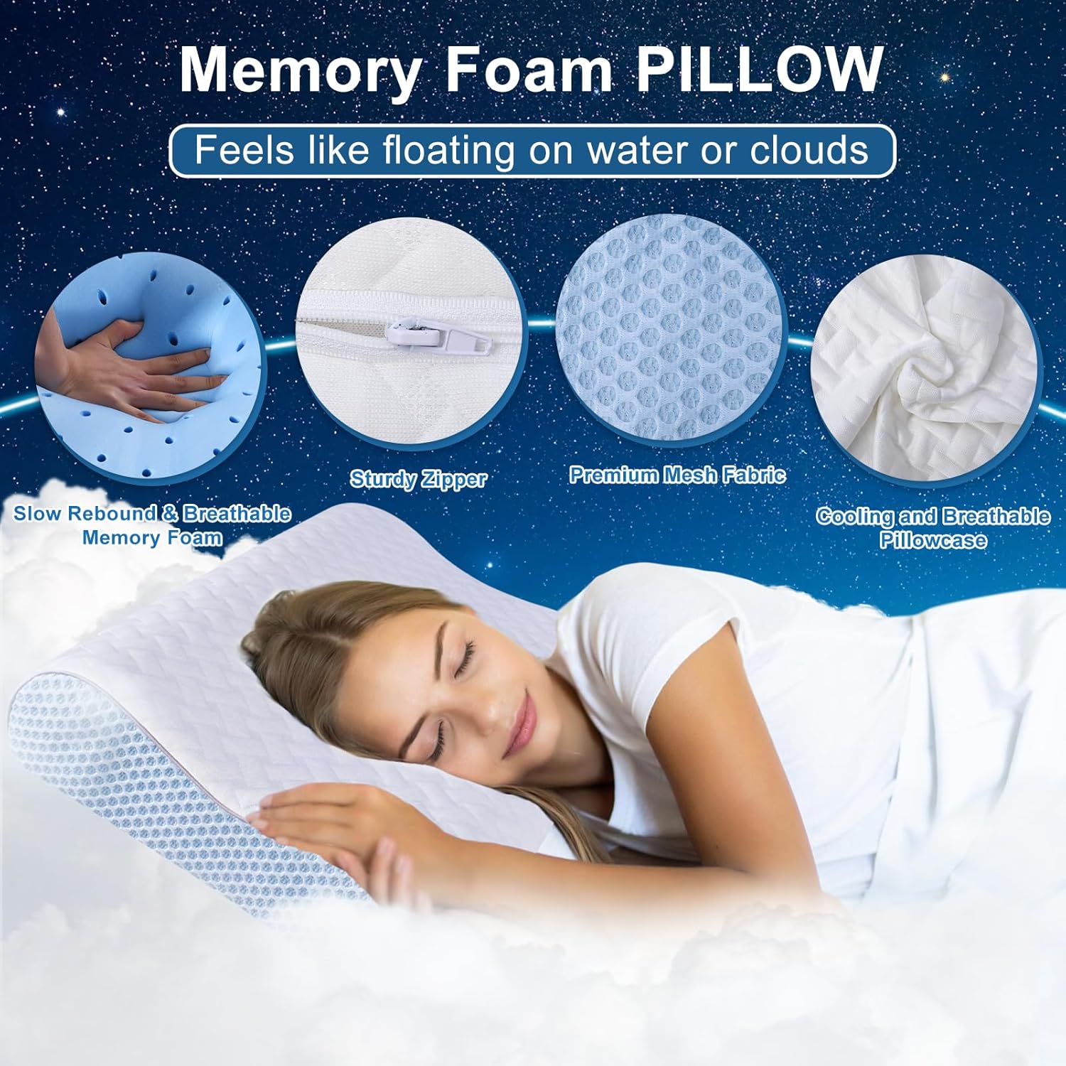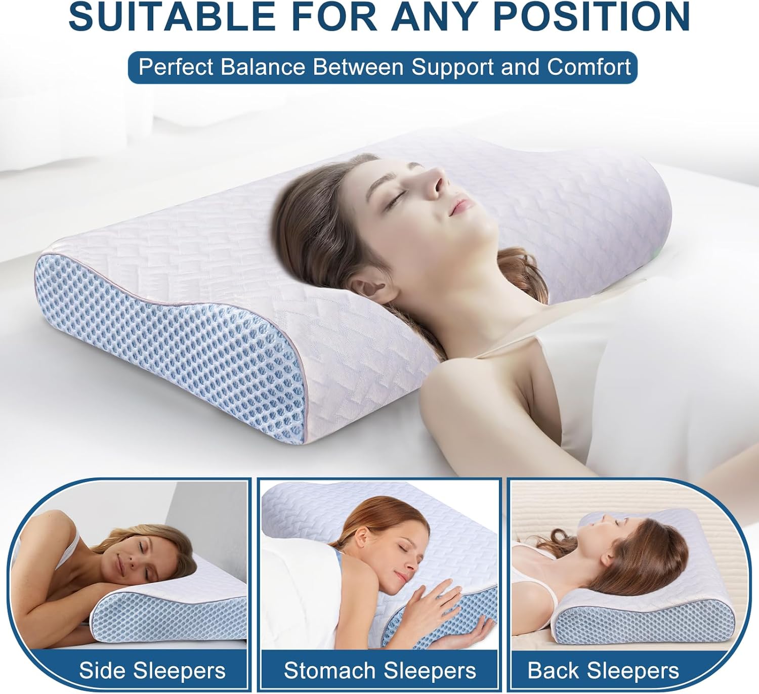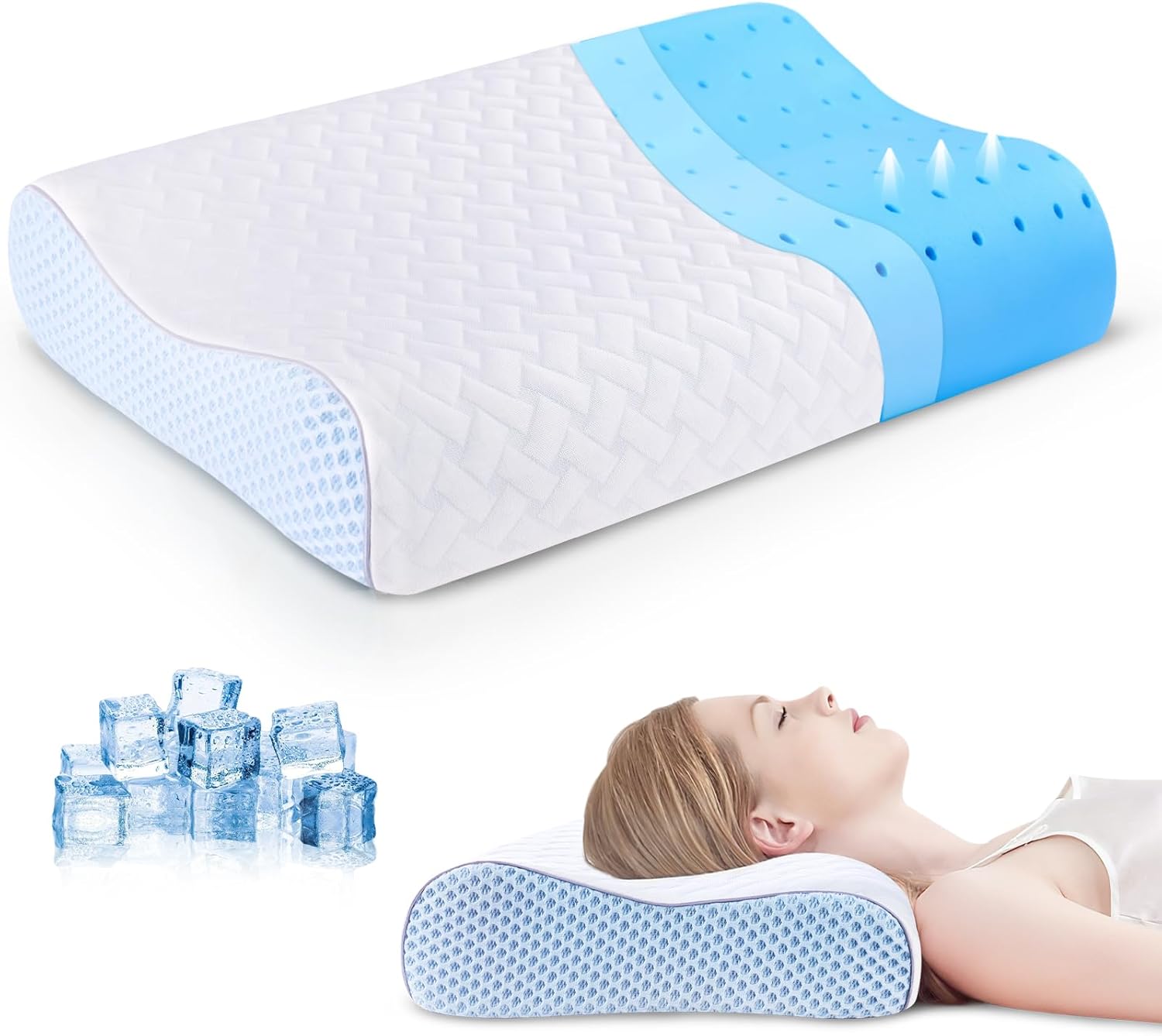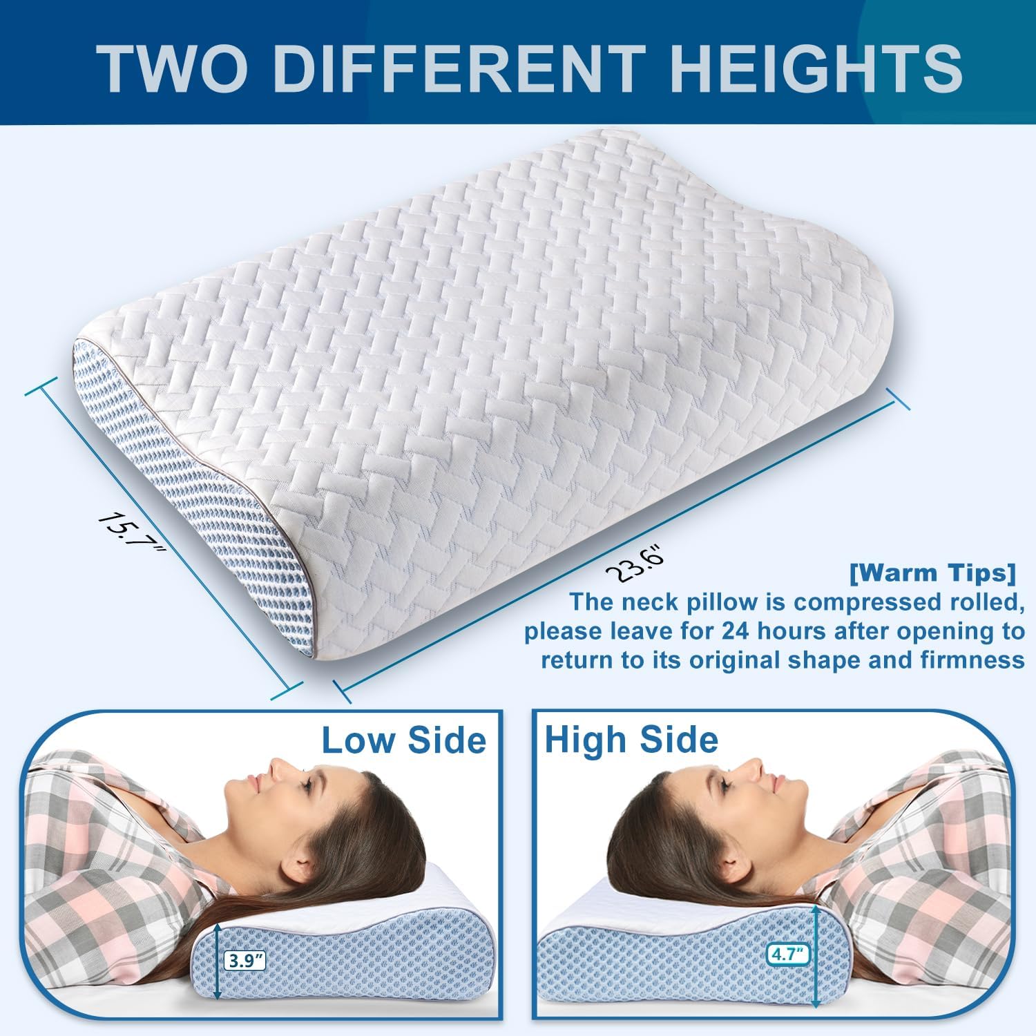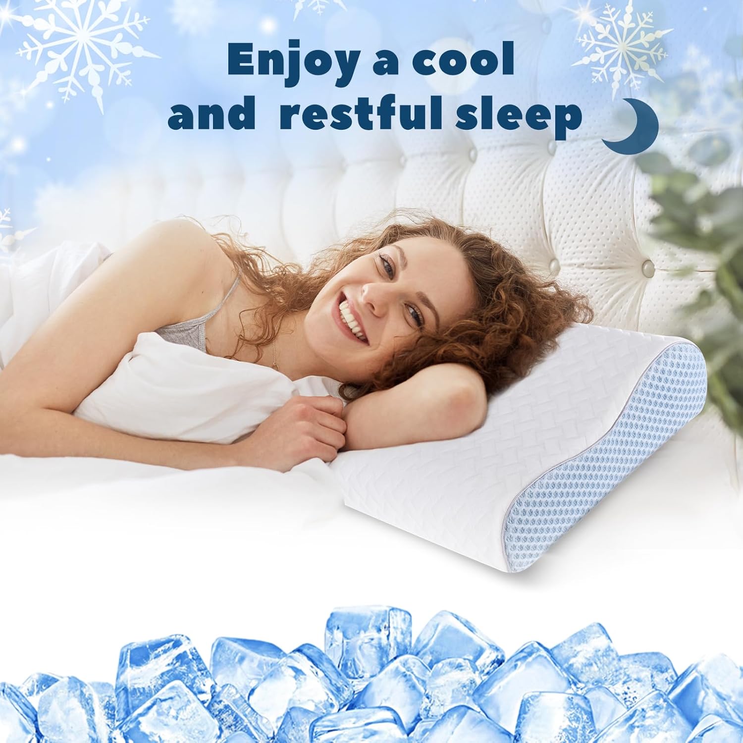 Neck Pillow for Neck and Shoulder, Cooling Memory Foam Pillow Bed Pillow for Sleeping, Contour Pillow Neck Support Pillow for Side Back Stomach Sleepers,Standard Size, Oreiller Mousse Memoire
