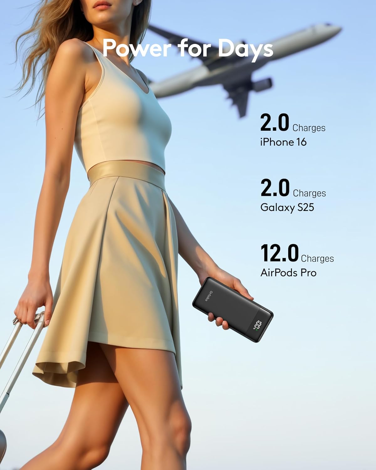 【10,000mAh Battery Bank Airline-Approved for Travel】TSA-friendly capacity meets most international airline carry-on standards. Just keep it in your carry-on bag and never check it in! Best of your travel essentials