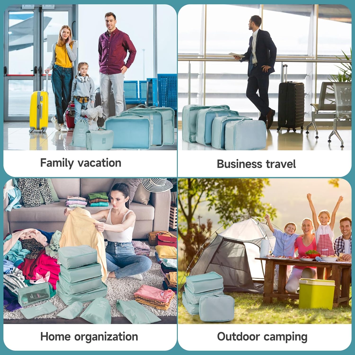 [MULTI-PURPOSE TRAVEL ORGANIZER]: Whether you are packing a carry-on suitcase, handbag, weekender bag, backpack, duffel bag, packing box, you can fit everything into the bag like a puzzle. The storage bag set has handles for easy carrying. Ultralight and collapsible, you can fold it and carry it in your bag, backpack, perfect for business trips, family vacations, skiing, camping.