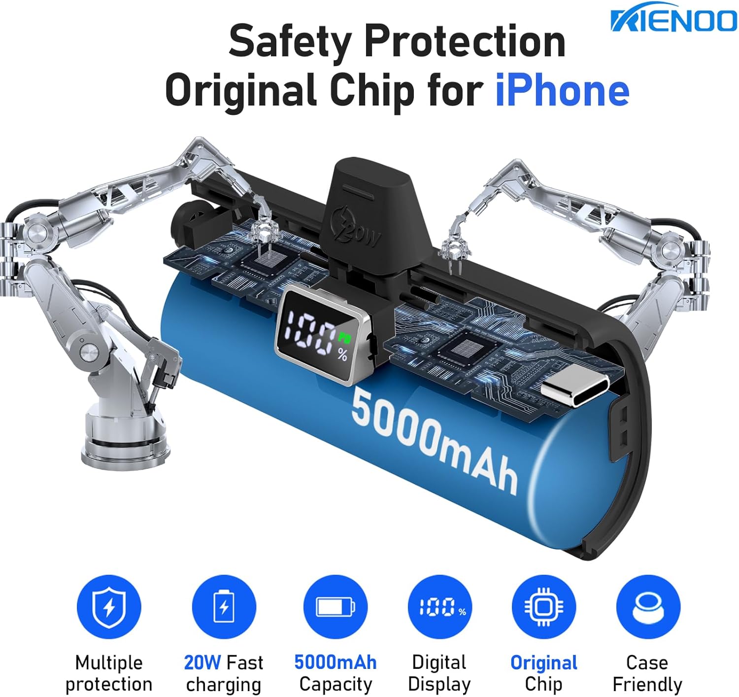Upgraded Capacity and LED Display: With 5000 mah upgraded battery capacity , the RIENOO portable phone charger is ready to charge your iPhone 15 at any time! The smart LED display allows you to easily understand the remaining power