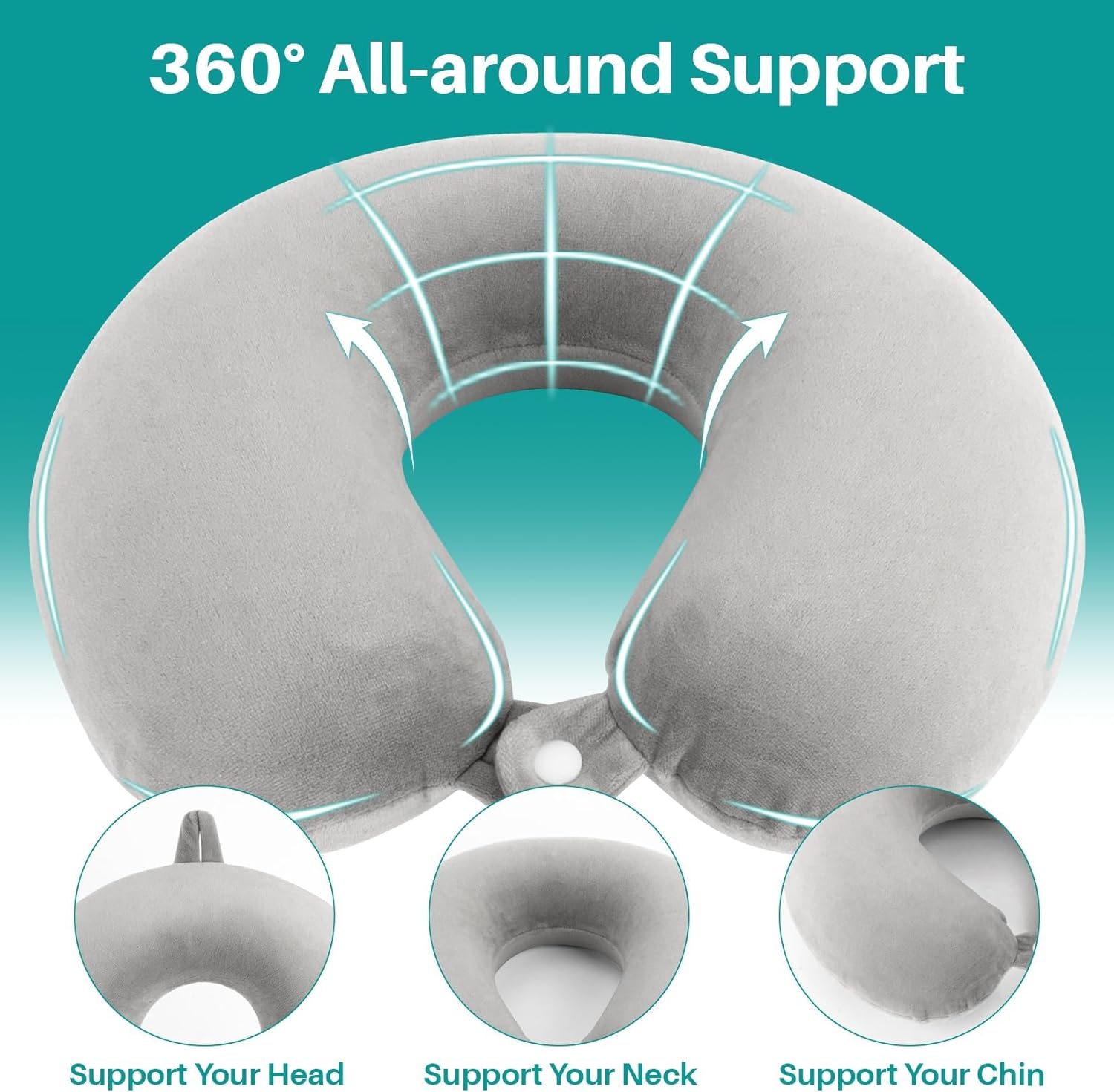 Full Neck Support: Features a 360-degree U-shaped wrap design that fits closely to the neck, chin, and head; Helps reduce neck pressure and prevents the head from tilting during rest; Covered with a soft, skin-friendly neck pillow cover; Adds enhanced comfort during travel; Perfect for long journeys on planes, trains, or in cars