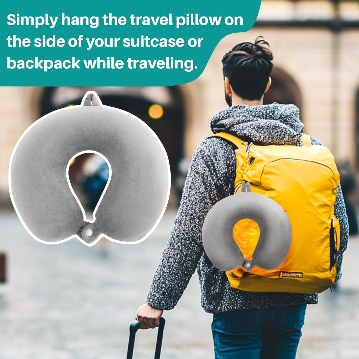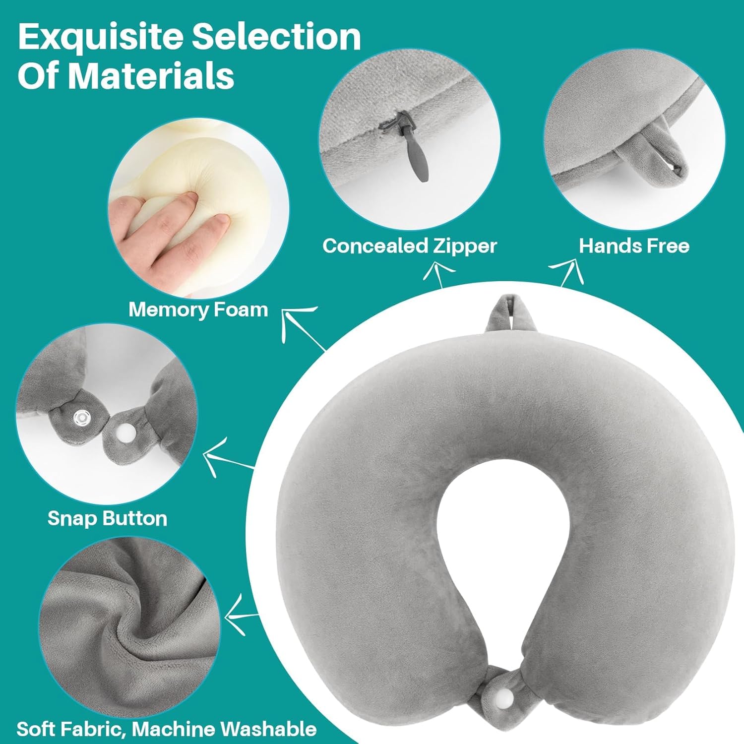 Washable Soft Cover: Comes with a skin-friendly gray pillowcase; Breathable and soft to the touch; Hidden zipper design allows for easy removal; Machine washable for easy care; Stays clean and fresh for every use, perfect for travel pillows on flights or road trips