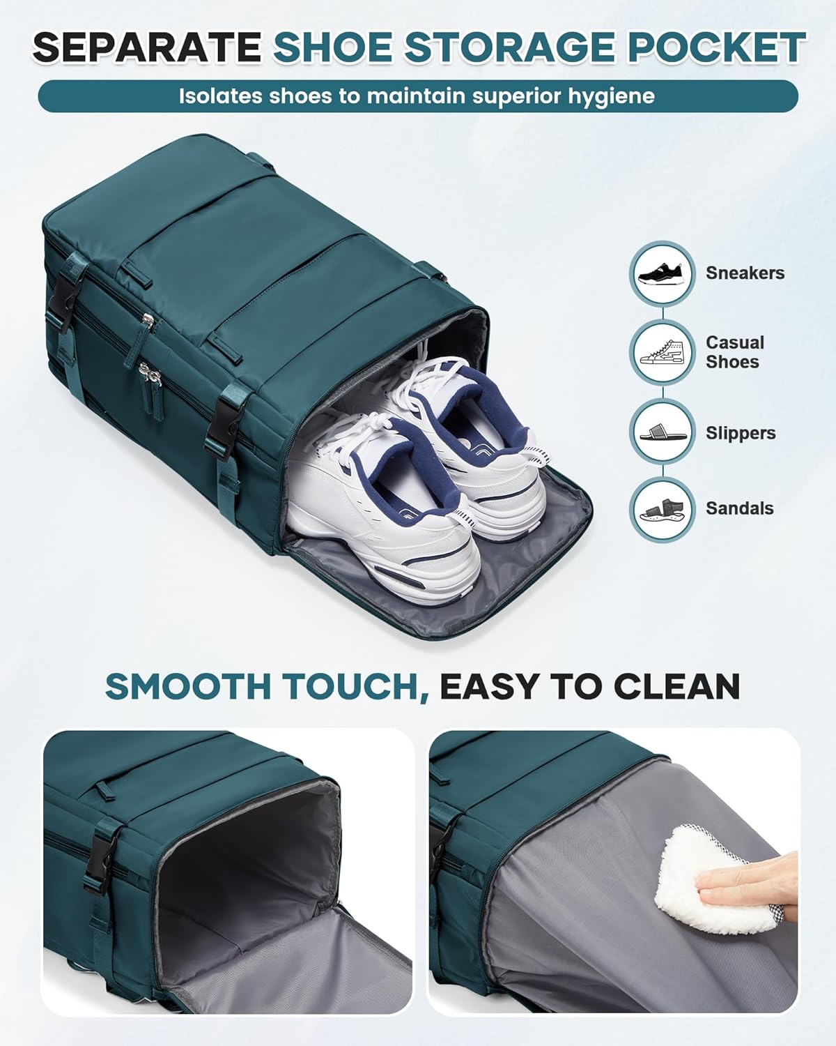 【Separate Shoe Compartment Design & Wet Bag】The wet bag is made of high density water resistant material can help you to separate dry items and wet items,if you have wet clothes or towel,you can put it in wet bag. A separate shoe compartment can help you carry and keep your shoes better in your travel bag.