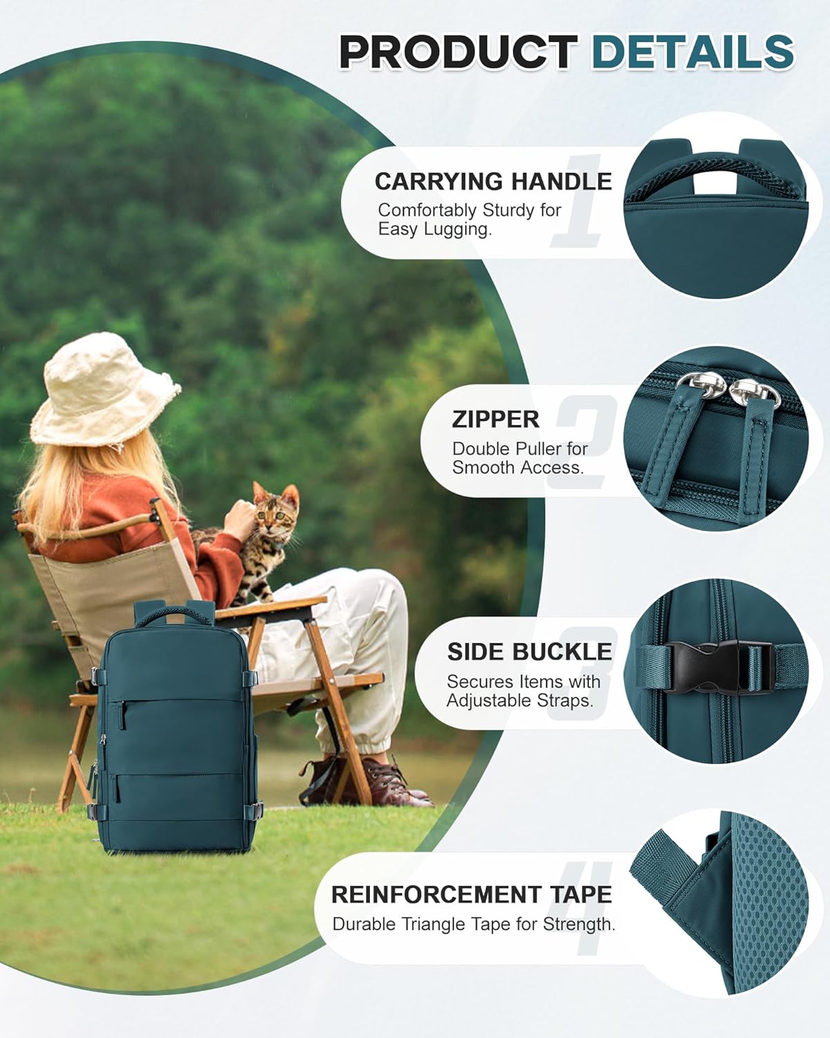 【Travel Backpack for women】This backpack is made of waterproof durable polyester, good air permeability and heat dissipation with two padded shoulder straps, offers lightweight carrying and of force reinforcement, relieve the pressure of your shoulders, and keeping cool when you carry it for a long time. And it is tough, firm and does not fade.