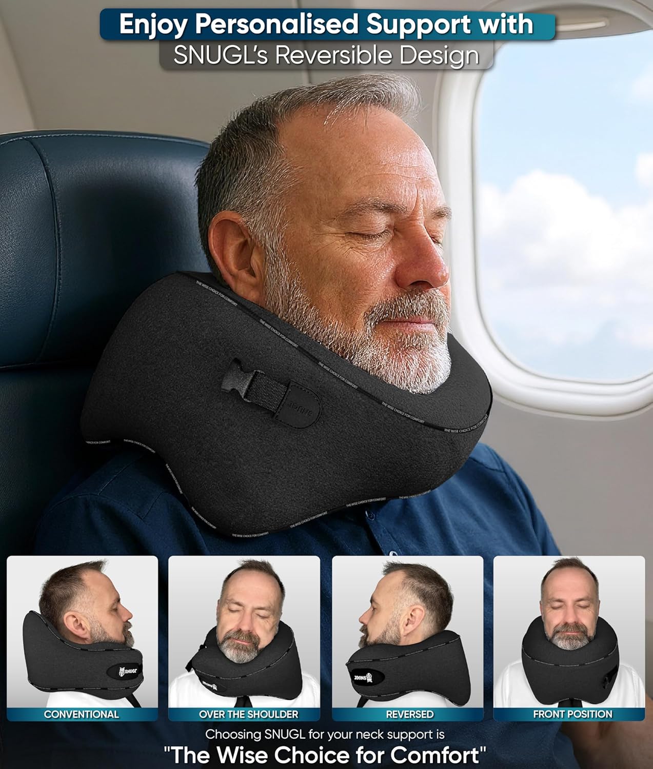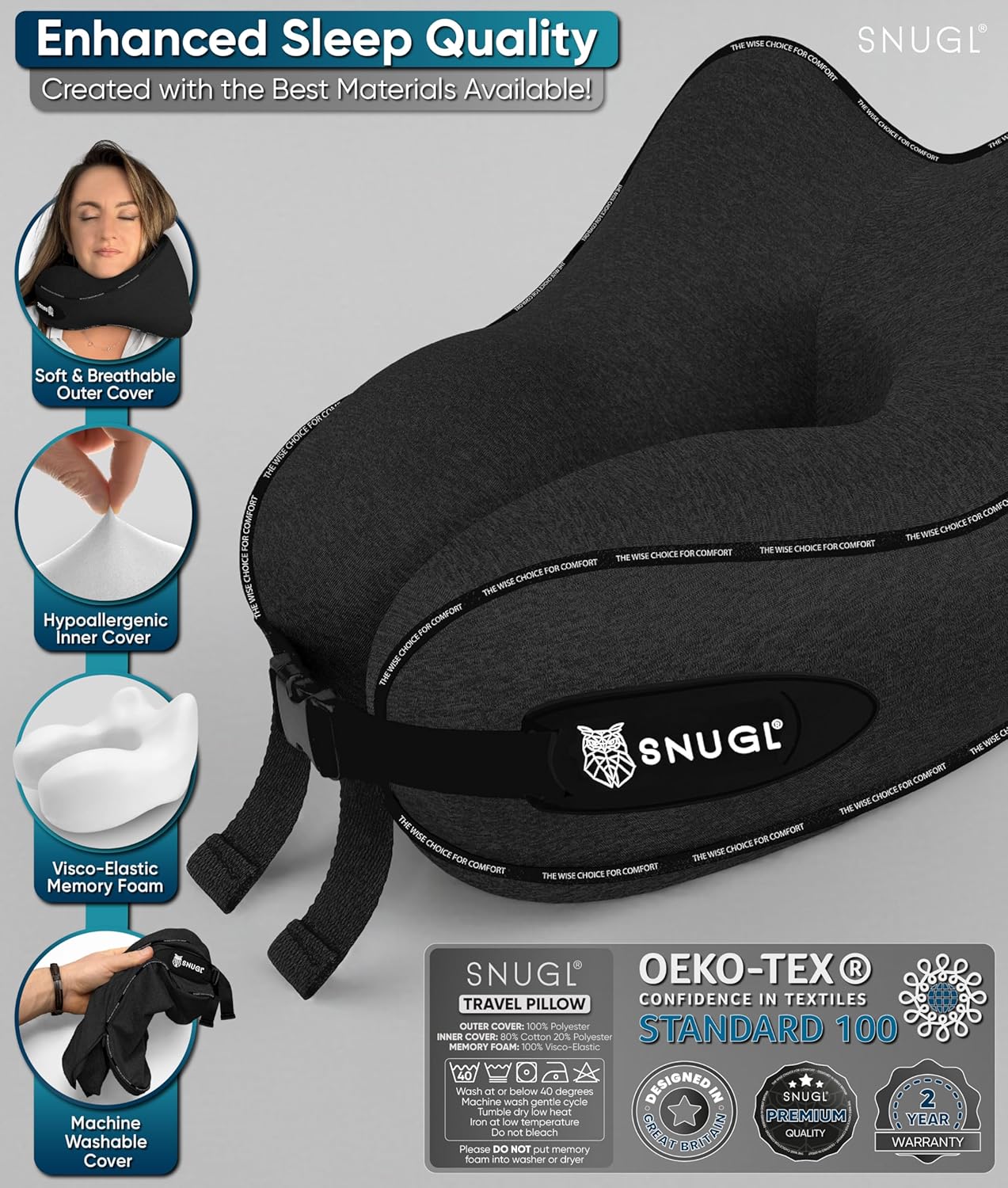 [ THE WISE CHOICE FOR COMFORT ] – A long flight without the right neck pillow can leave you with considerable neck pain. The SNUGL neck travel pillow is crafted to deliver the same benefits as a high-quality orthopedic pillow, wherever your journey takes you. Its ergonomic pillow shape offers superior neck support for ultimate neck pain relief during long haul flights.