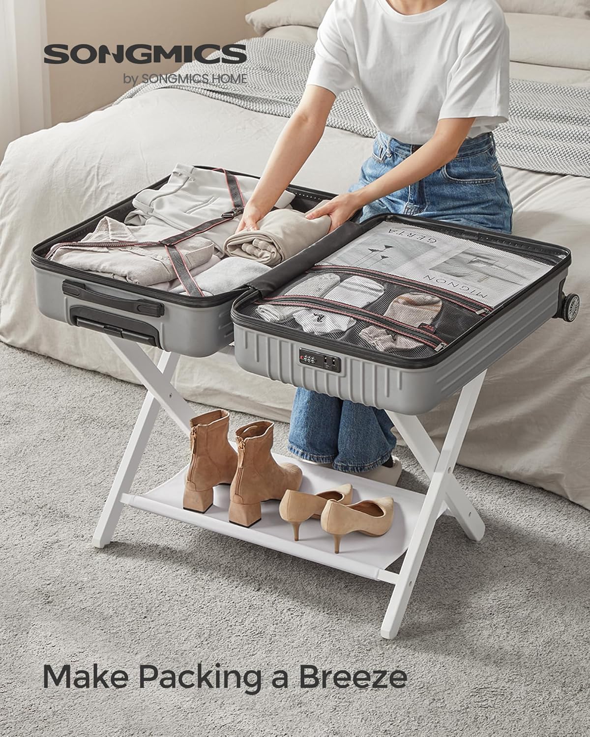 [Packing Made Easier] Make your guests feel at home with this convenient luggage rack. It elevates their suitcase to a comfortable height for packing and unpacking, saving you or your guests from bending down to the floor
