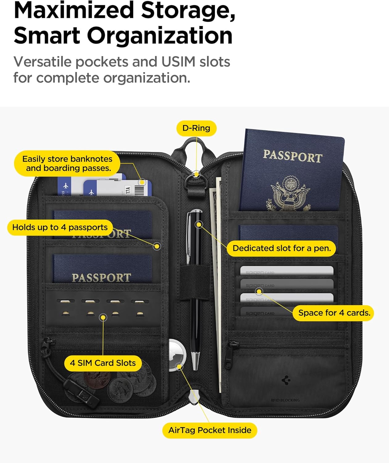 Organized Storage: Includes 4 passport pockets, 5 credit/ID card slots, 4 SIM card slots, a pen holder, and a D-ring to securely store your keys