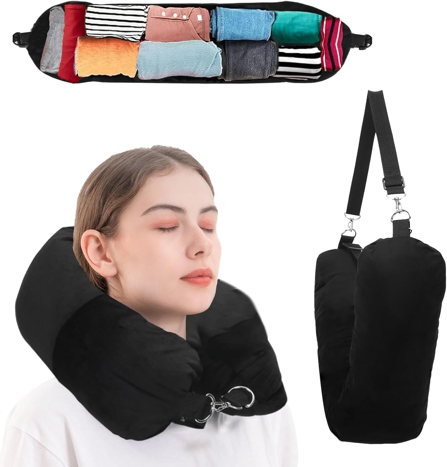 【Space-Saving】Traveling has never been easier. The additional adjustable shoulder strap lets you take your travel neck pillow on the go or add it to your suitcase. Ideal for weekend getaways, camping trips, and budget-friendly air travel.