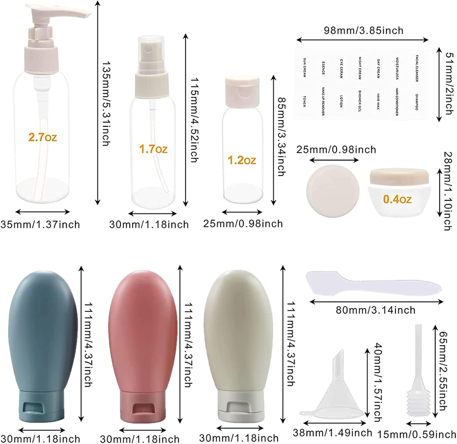 💜[Meets Airplane Carry-On Standards]: Excellent leak-proof design, ideal bottle size, easily identify contents of your bottle with 12 pcs tags, plus a zippered bag, guarantee bottles for cosmetic and hygiene toiletries pass airline securities stress free and with ease. Perfect for travel, vacation, plane trip and camp.