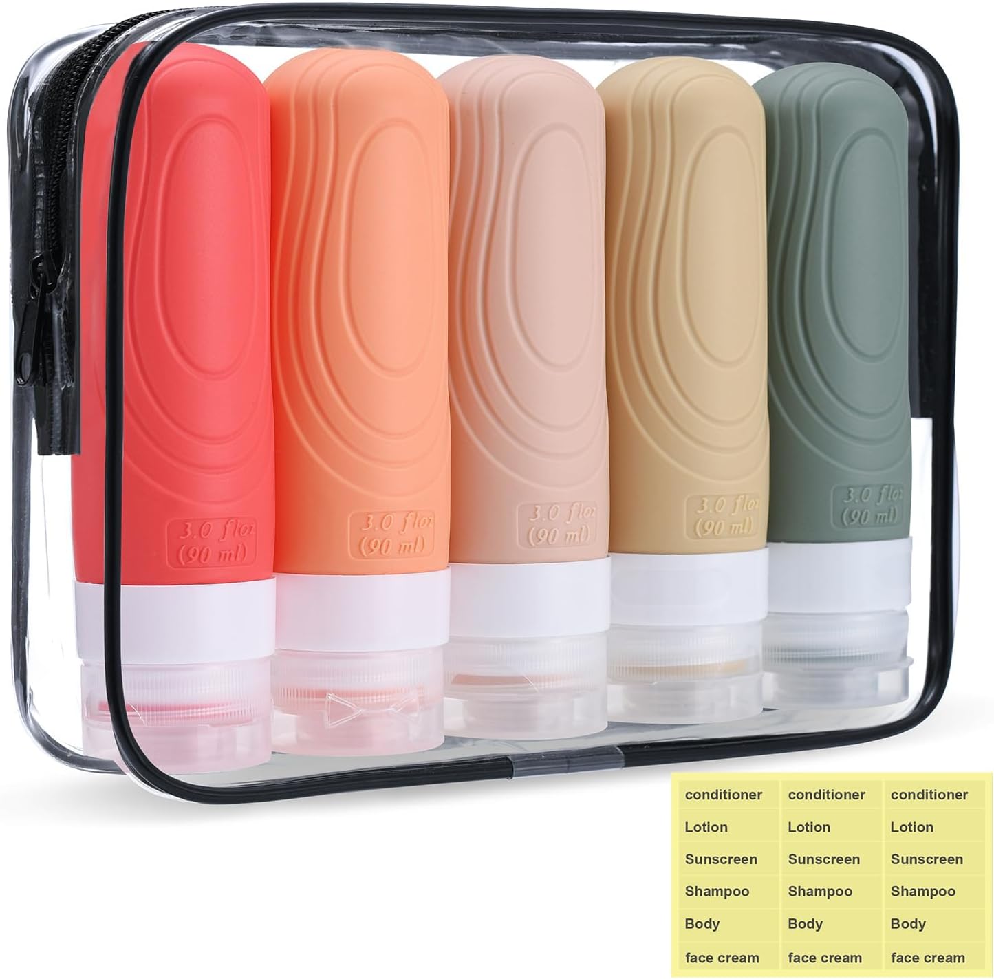 Great Trip Helper: This travel bottles set are the best and latest thing you should have. It comes with high quality upgraded clear zip bag, 5 Bottles and 1 Page Label, which meets all your needs when you travel, nicely takes up less room in your luggage, Convenient and portable, Must-have Traveling Sets.