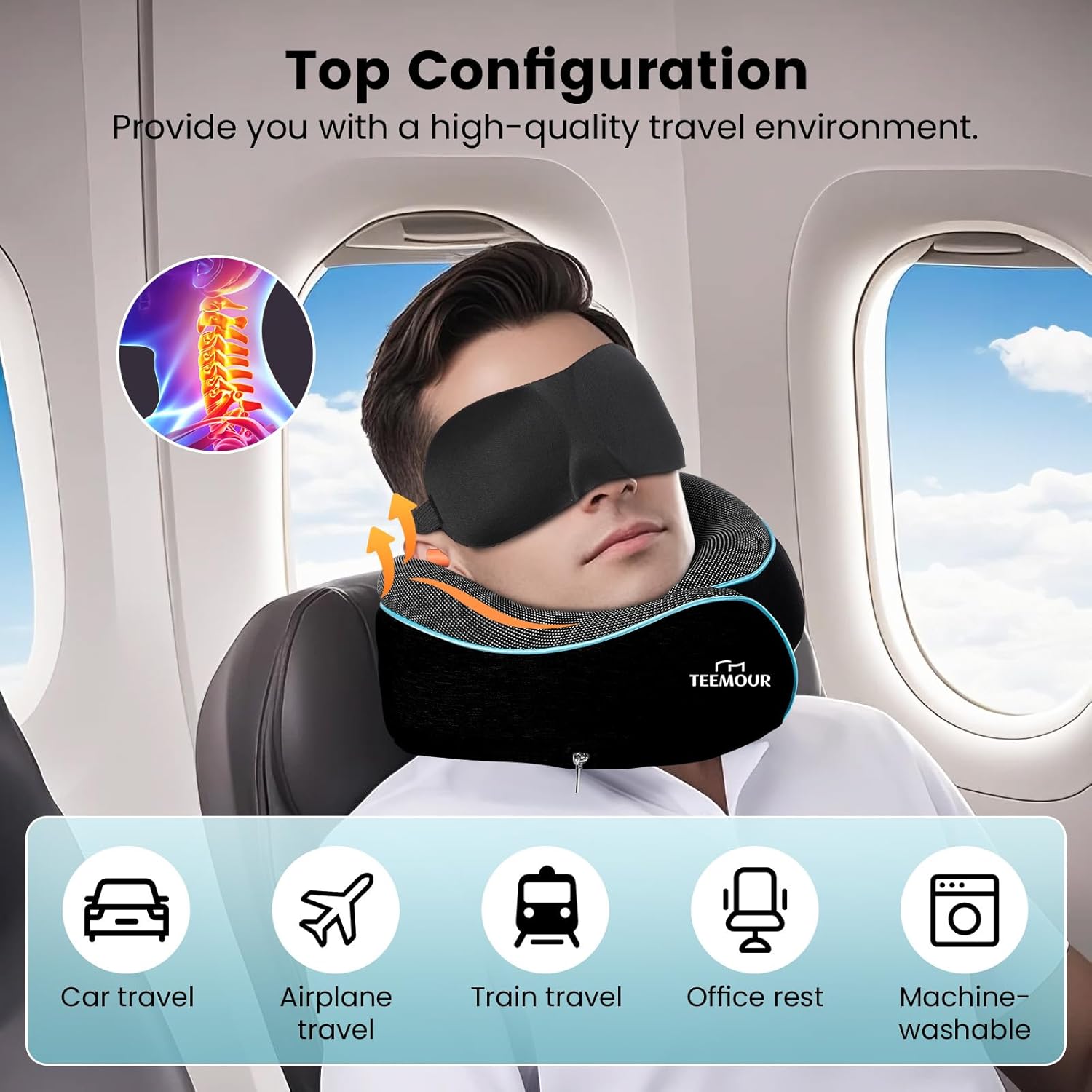 Upgrade Your Travel Comfort with Teemour ERGONOMIC NECK PILLOW—Tired of restless journeys? Our travel pillow combines good support with luxurious comfort, designed for travelers who demand the best. Ideal for upright seating in planes, cars, trains, or chairs, providing 360° neck stability unmatched by standard U-shaped pillows.
