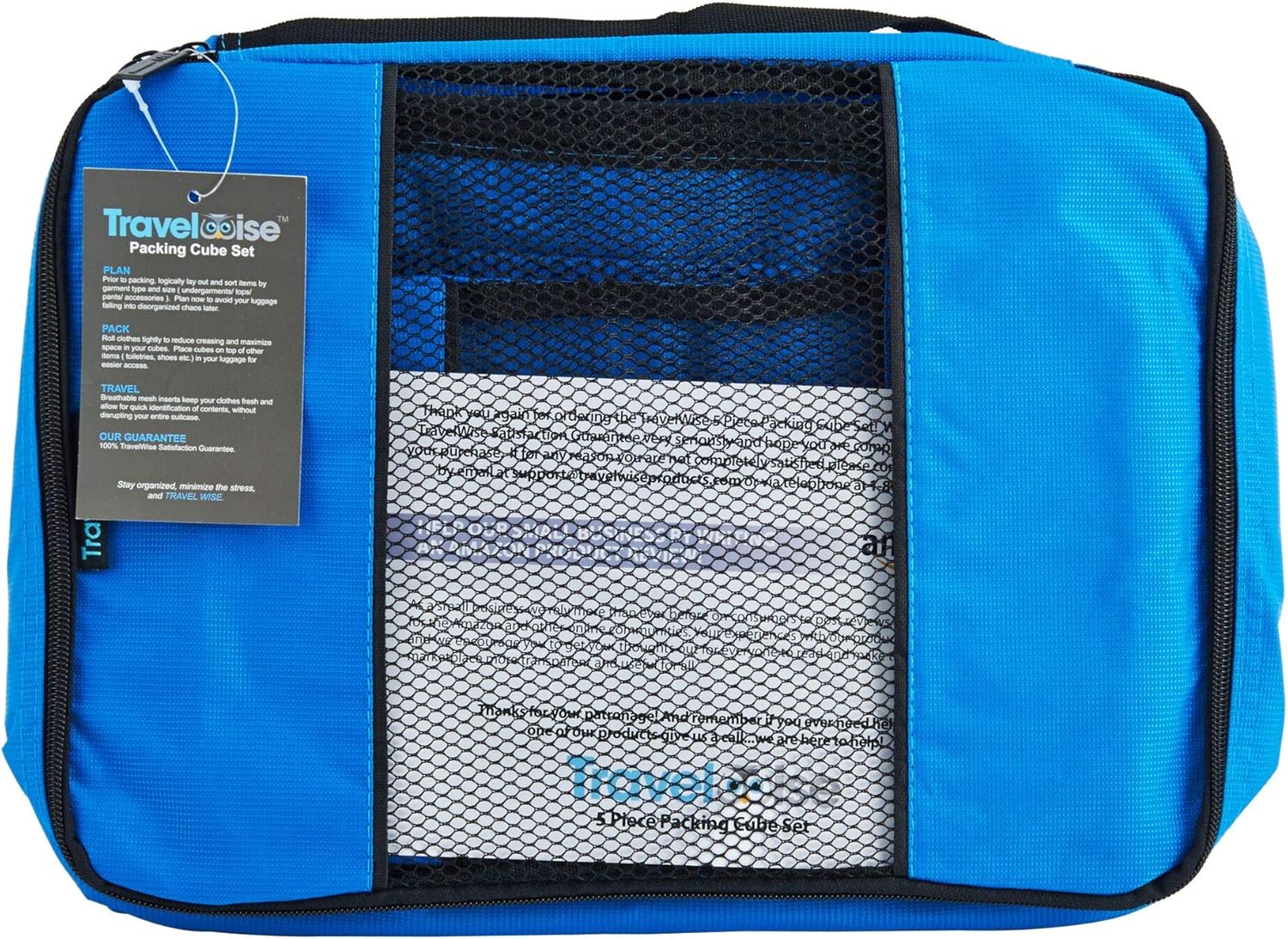 The TravelWise 5-Piece Packing Cube Set is an essential travel accessory that allows clothes to stay folded and neat when packed in their own “small drawers”. Constructed with lightweight and durable nylon, these multi-sized packing cubes compartmentalize similar items such as shirts, pants, underwear, swimsuits, and electronic accessories to streamline packing and maximize all available space in your suitcase or bag. The breathable, open mesh panel allows you to easily view what’s inside each cube without unzipping them, so you won’t have to frustratingly search for missing items. Perfect for short and long trips, clothes also have less room to shift, which means less wrinkling and more time to relax on your trip. These travel packing cubes are available in 9 unique colors that allow each traveler to easily keep track of their own luggage. Two-way easy-pull zippers make opening and closing these luggage cubes simple and fast. Each set includes one small, medium, and large cube to organize different sized items.
