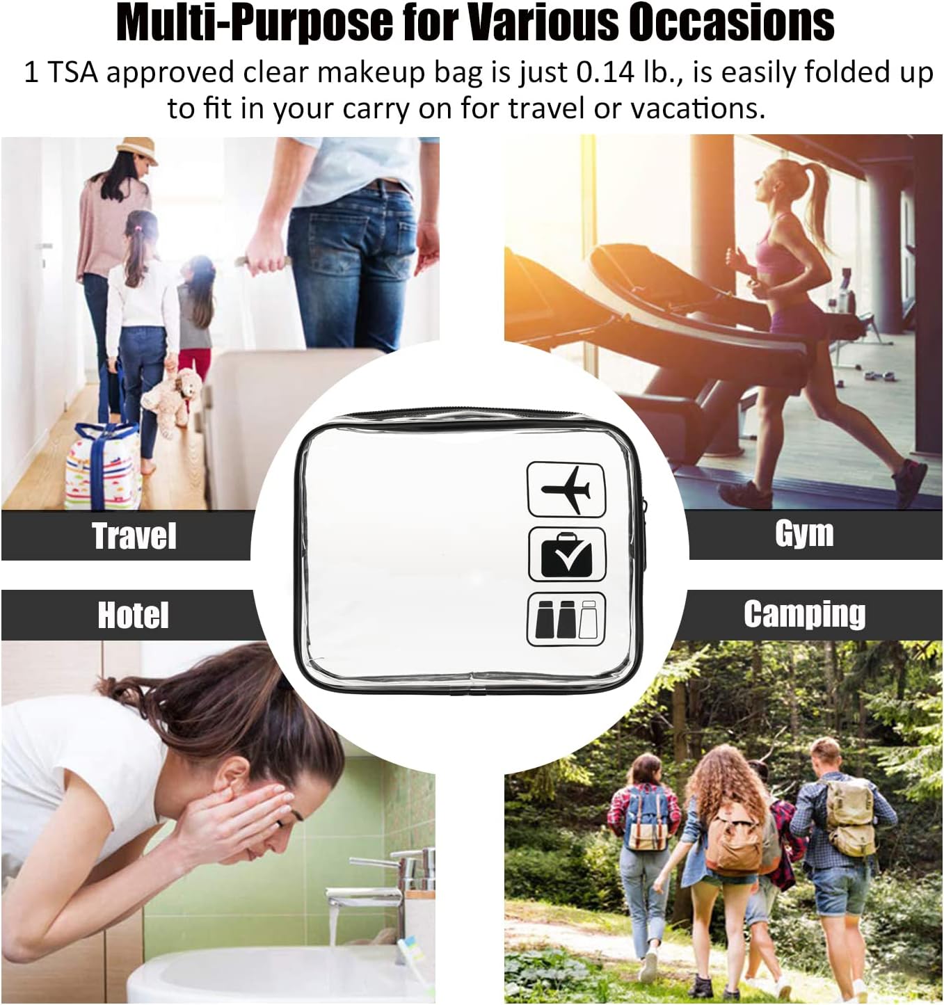 TSA approved clear toiletry bag strictly follow 3-1-1 regulations.Easy and quick to pass through airport security, Save your time and no more hold ups or hassles at the airport.An ideal cosmetics makeup quart size toiletry bags for all ages.